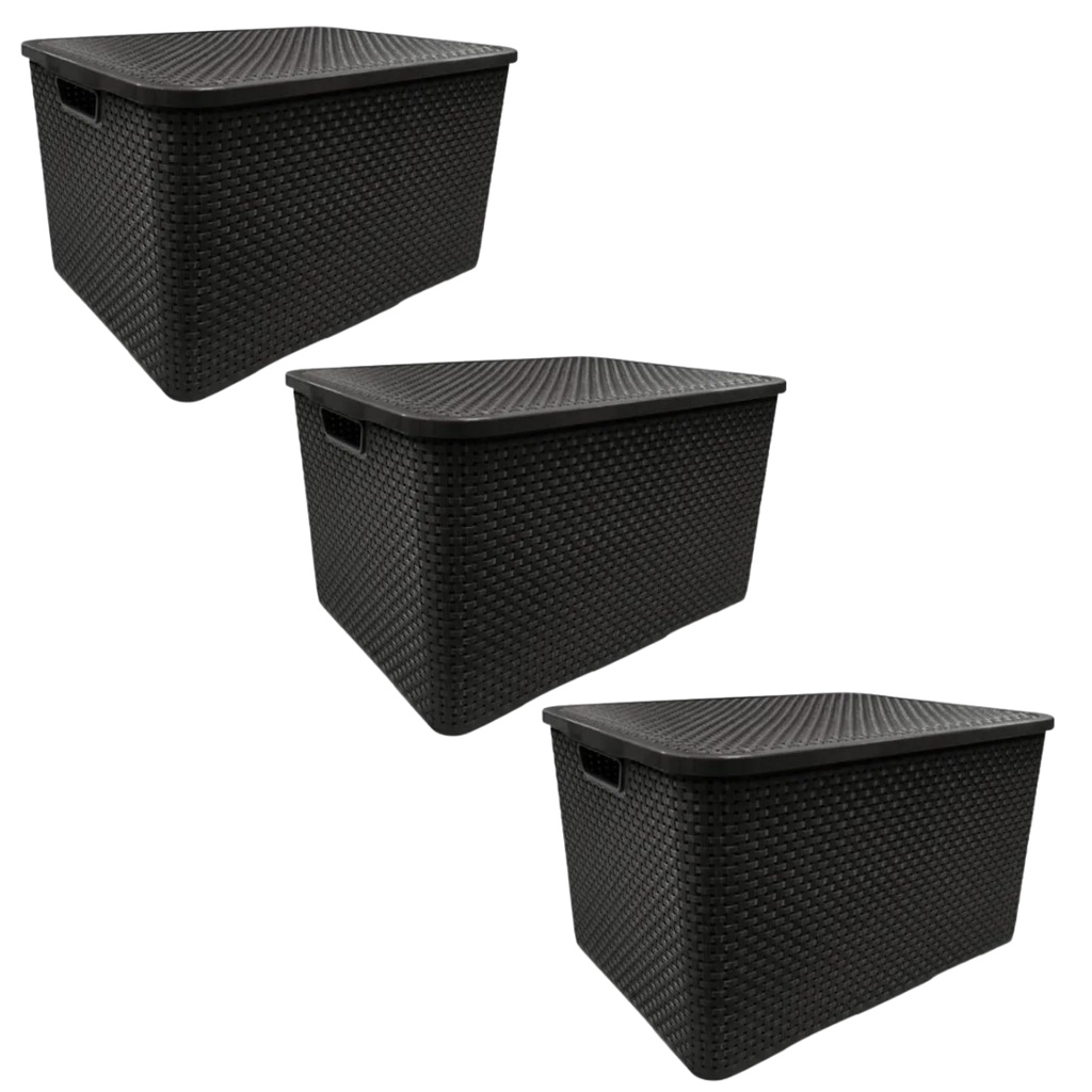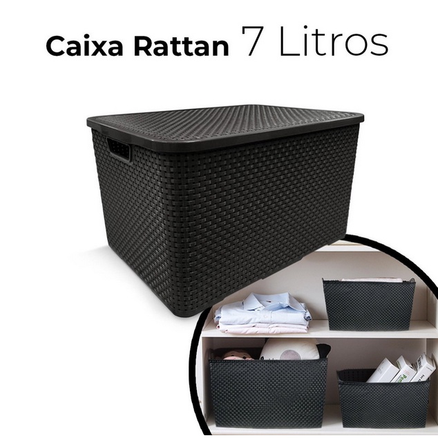 Oferta Kit 3 Caixas Organizadora Rattan Com Tampa Para Brinquedo E Roupa Suja Multiuso 7 Litros