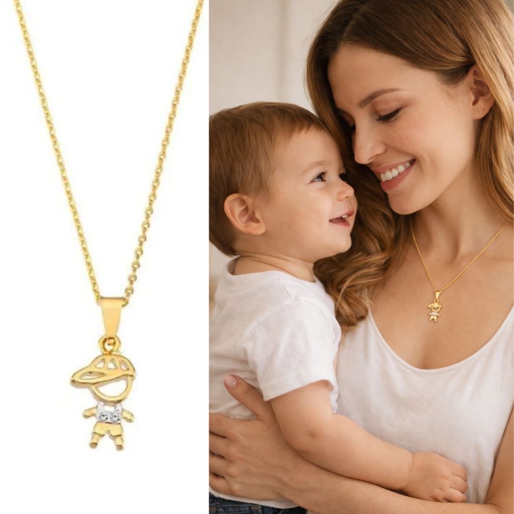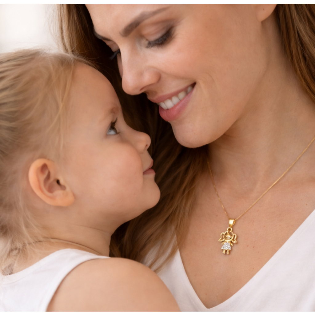 Colar De Filhos E Família Menino E Menina Banhado A Ouro