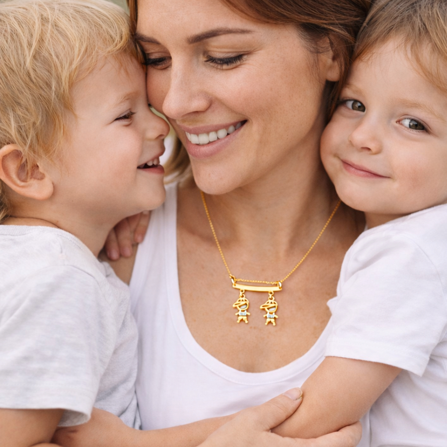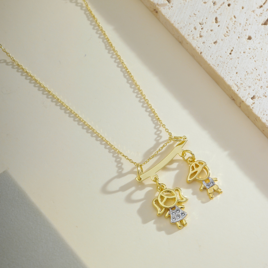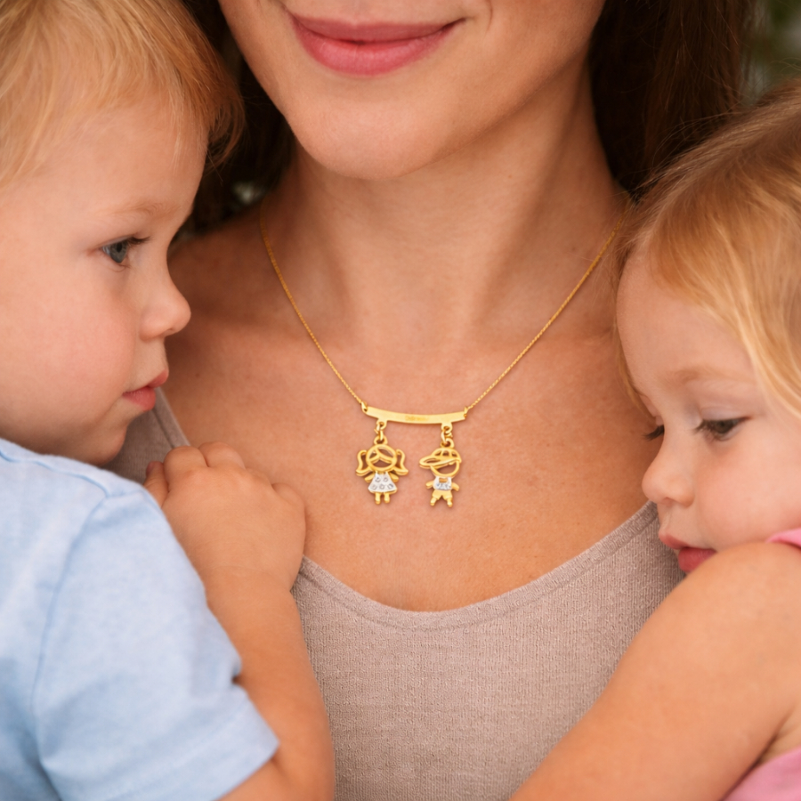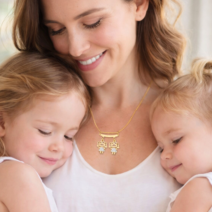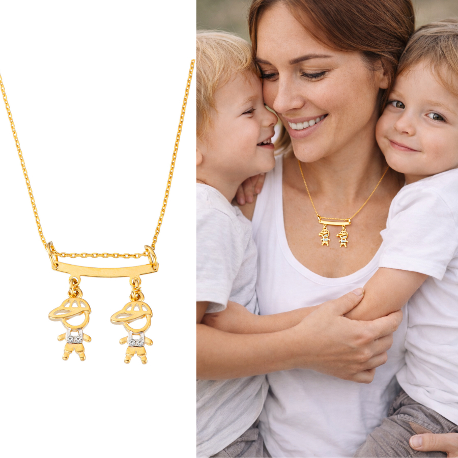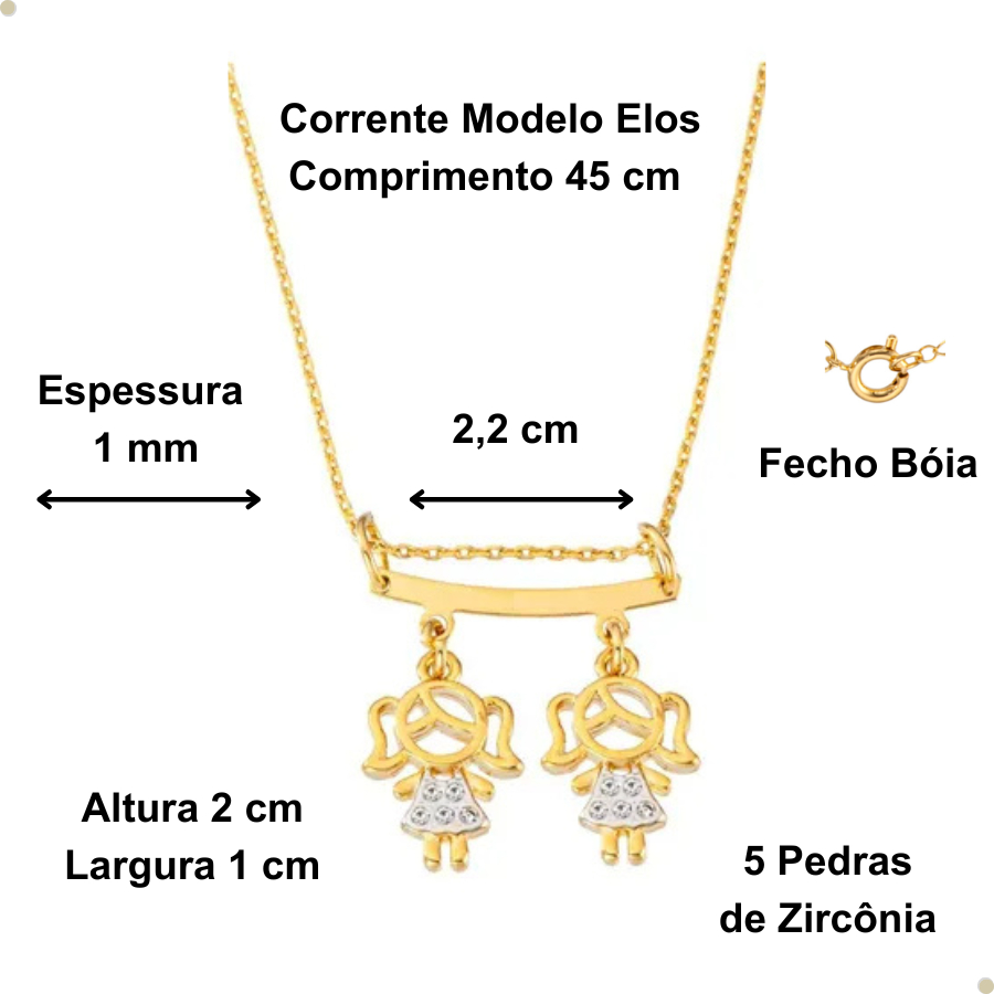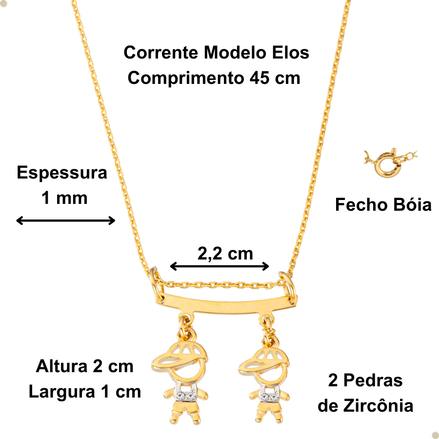 Colar De Filhos Com 2 Pingentes Menino ou Menina Banhado Ouro 18k