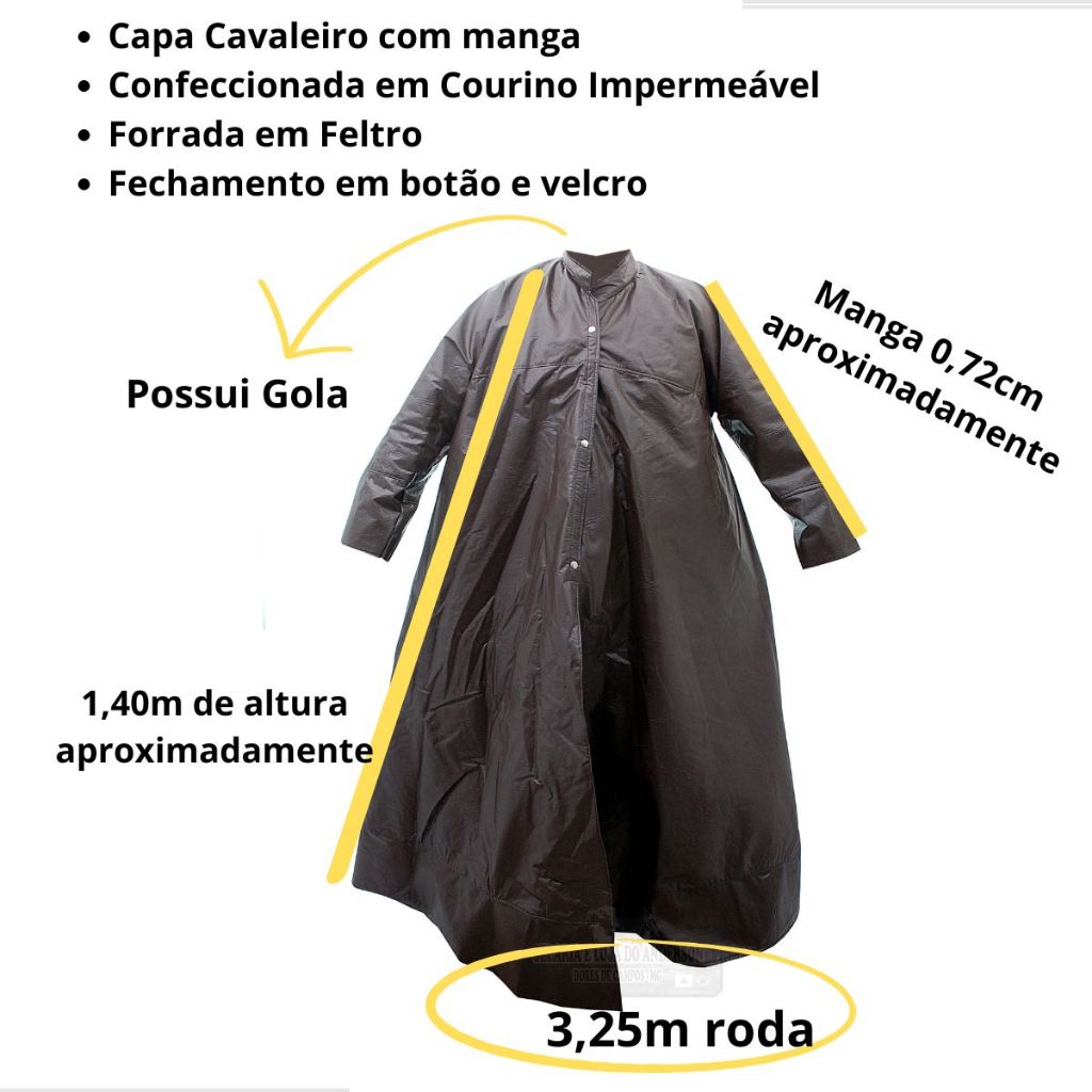 Capa de Chuva Boiadeiro com Manga em Courino Cavaleiro Impermeável e Resistente