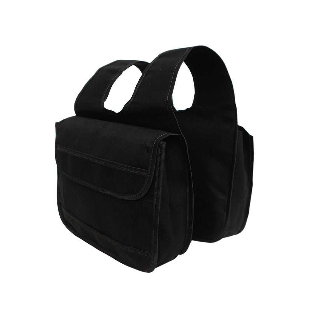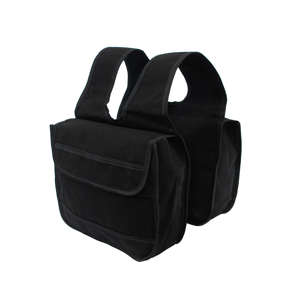 Bolsa alforje dupla confeccionada em lona impermeável preta para selas, viagens, cavalos, cavalgada, porta lata produto direto da fábrica