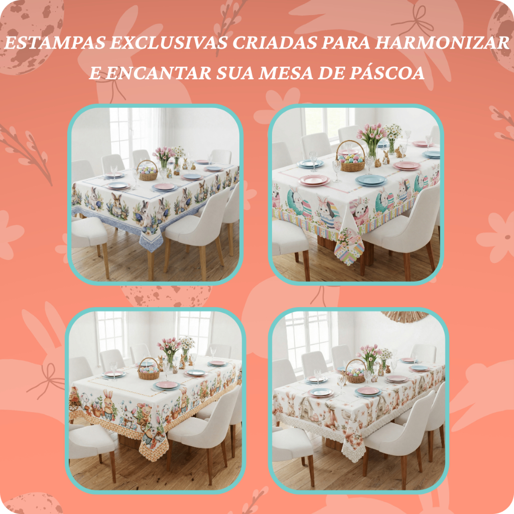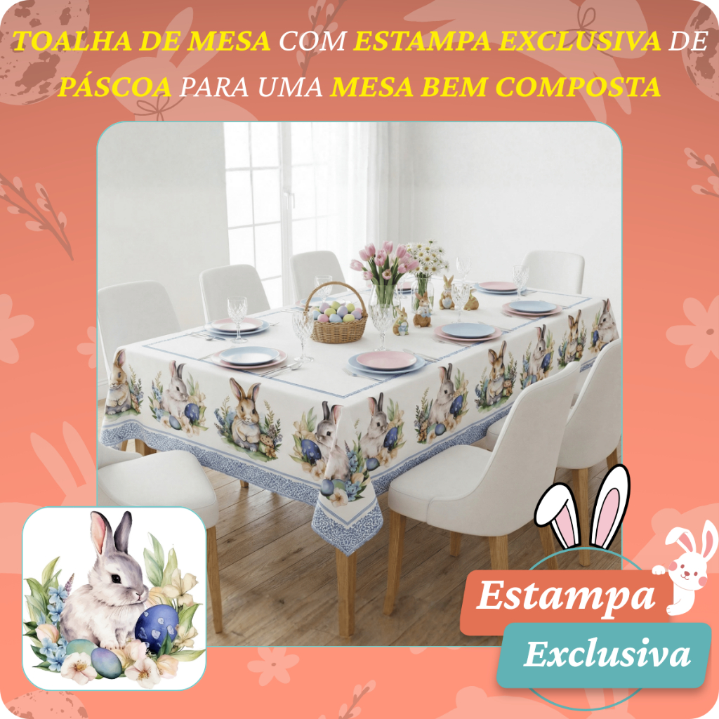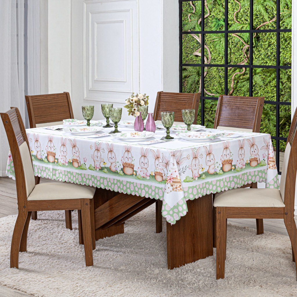 Toalha De Mesa 8 Lugares Estampada Páscoa e Encantos 3,00 x 1,50 - Decoração, Jantar, Cozinha