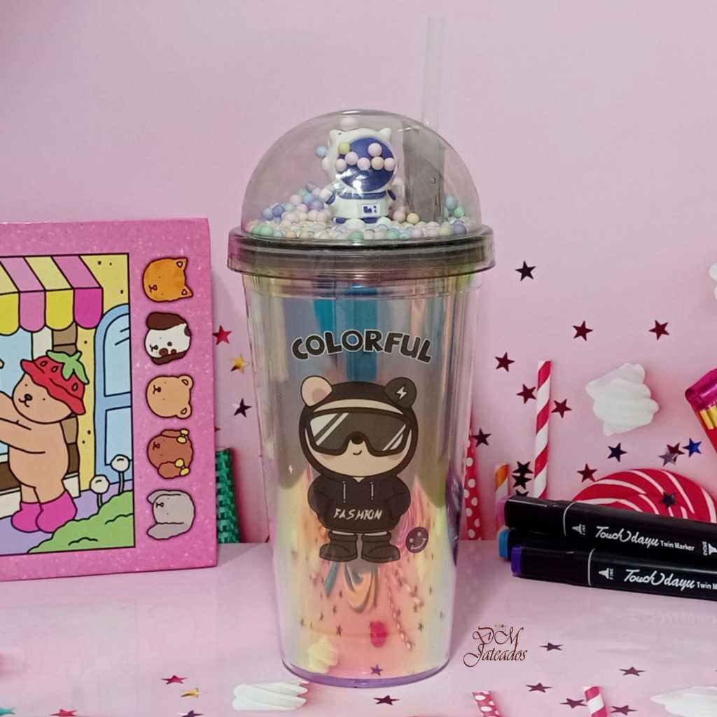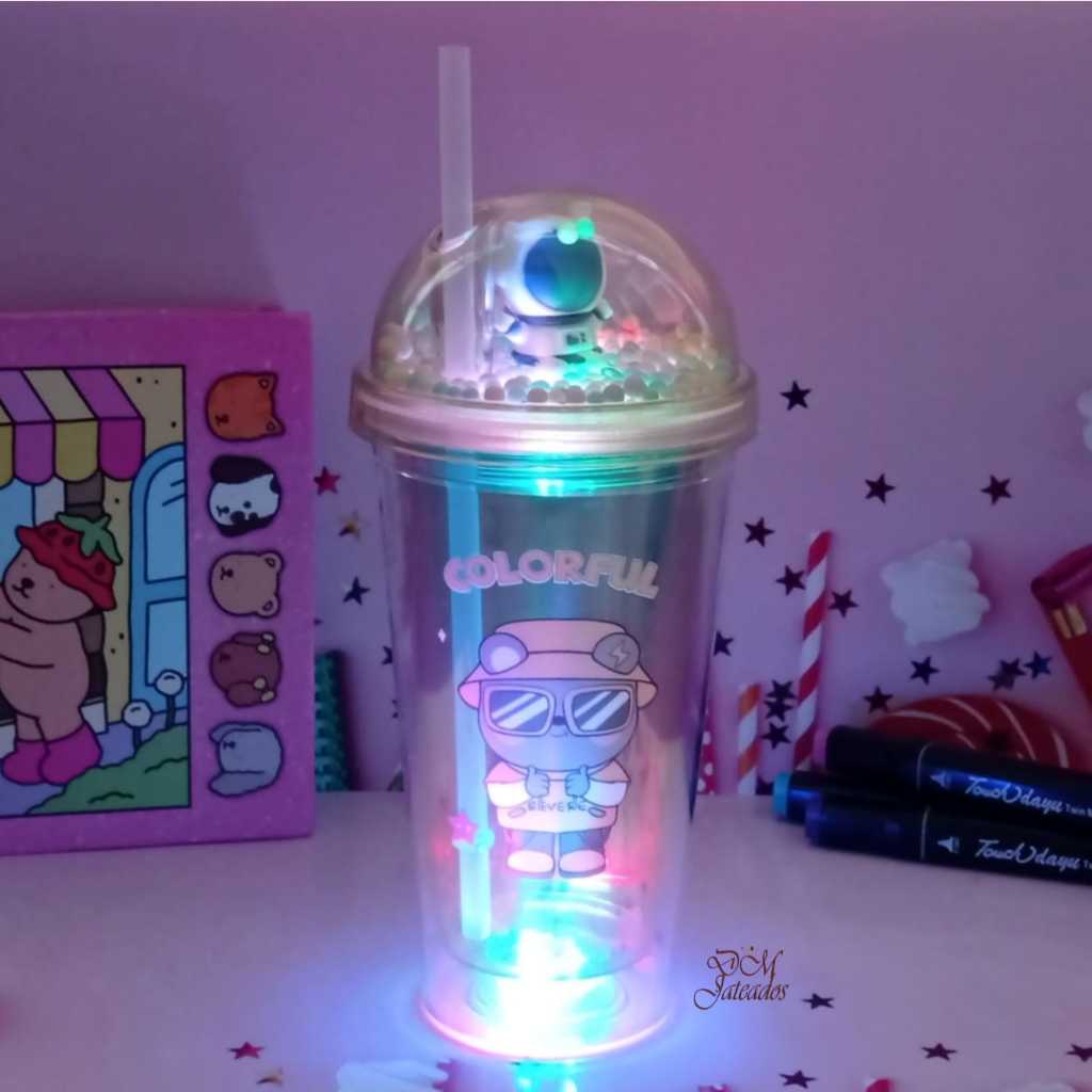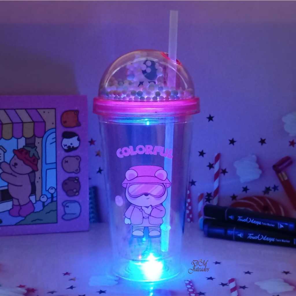Copo Colorido Pisca Pisca com Tampa Divertida e Canudo – LED Multicolorido Infantil