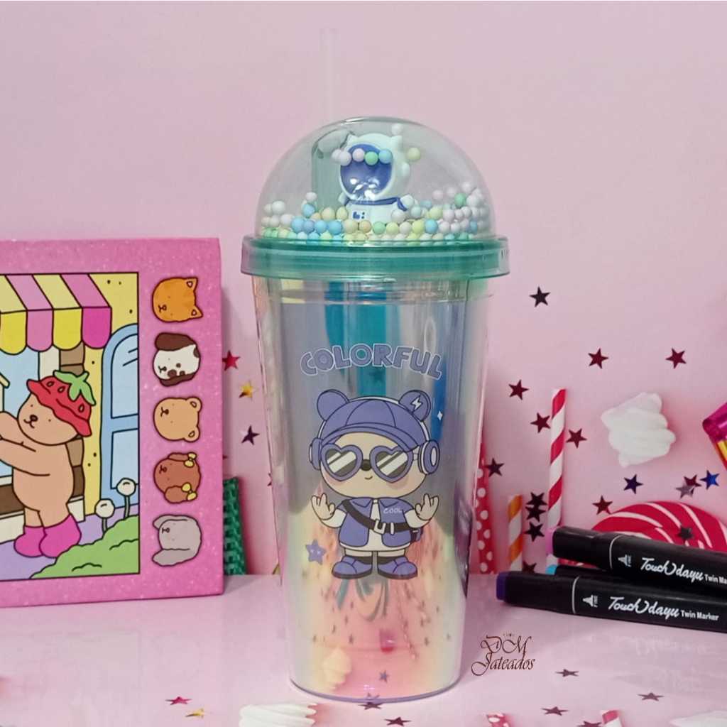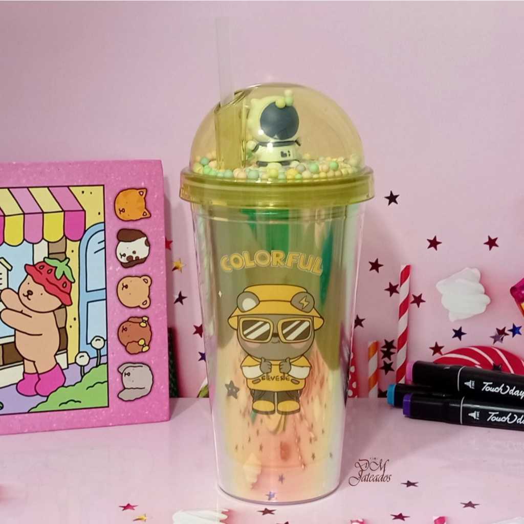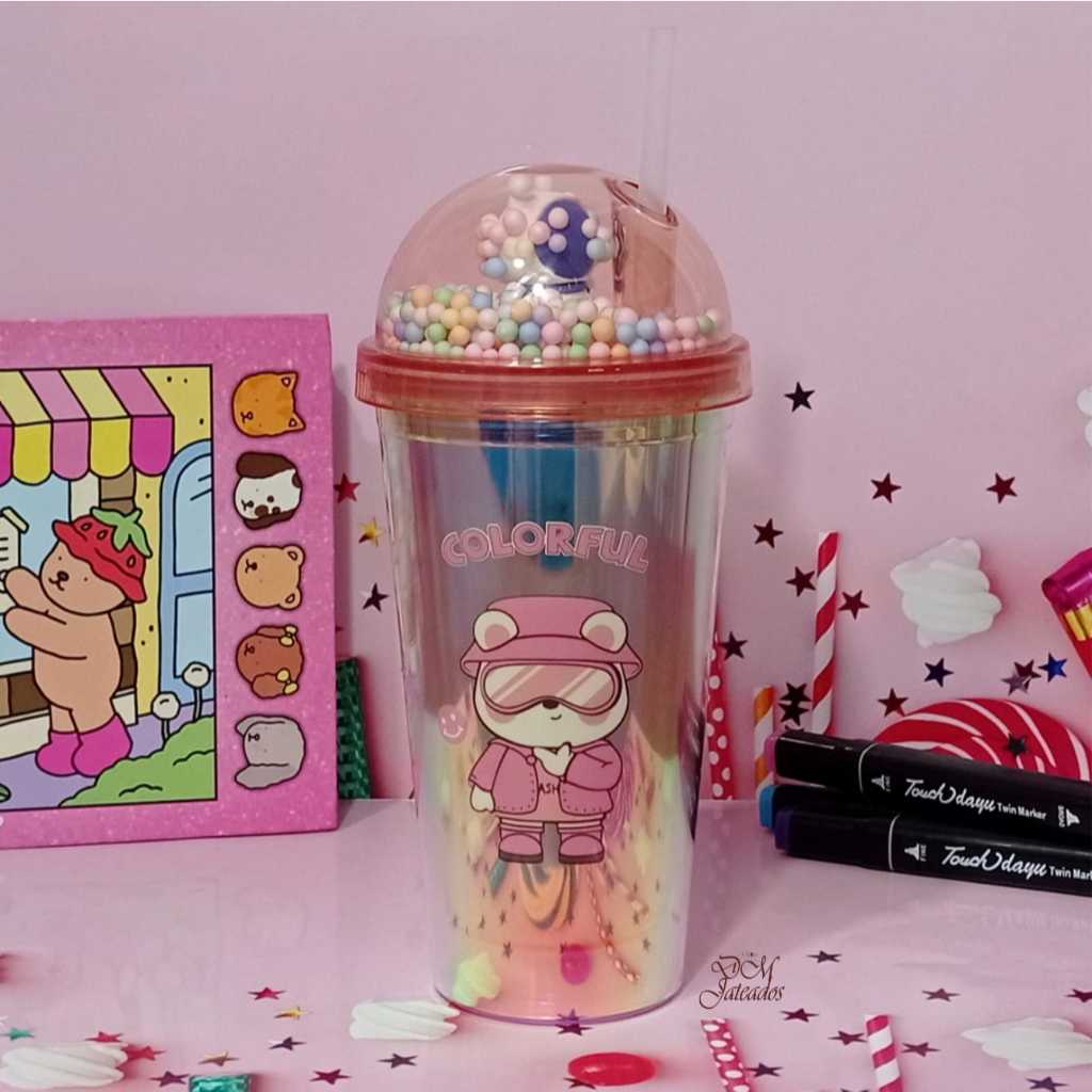 Copo Colorido Pisca Pisca com Tampa Divertida e Canudo – LED Multicolorido Infantil