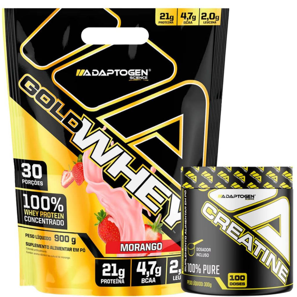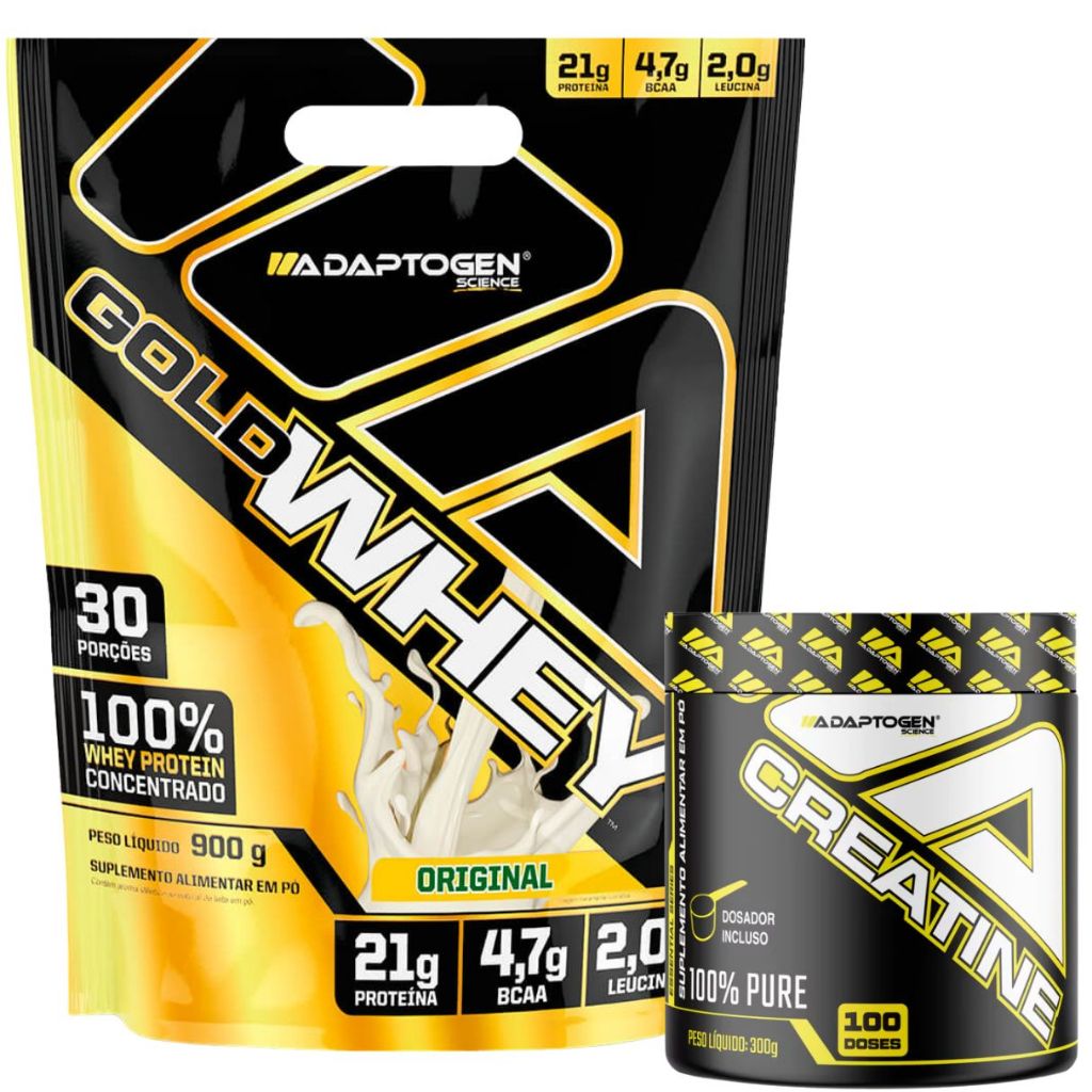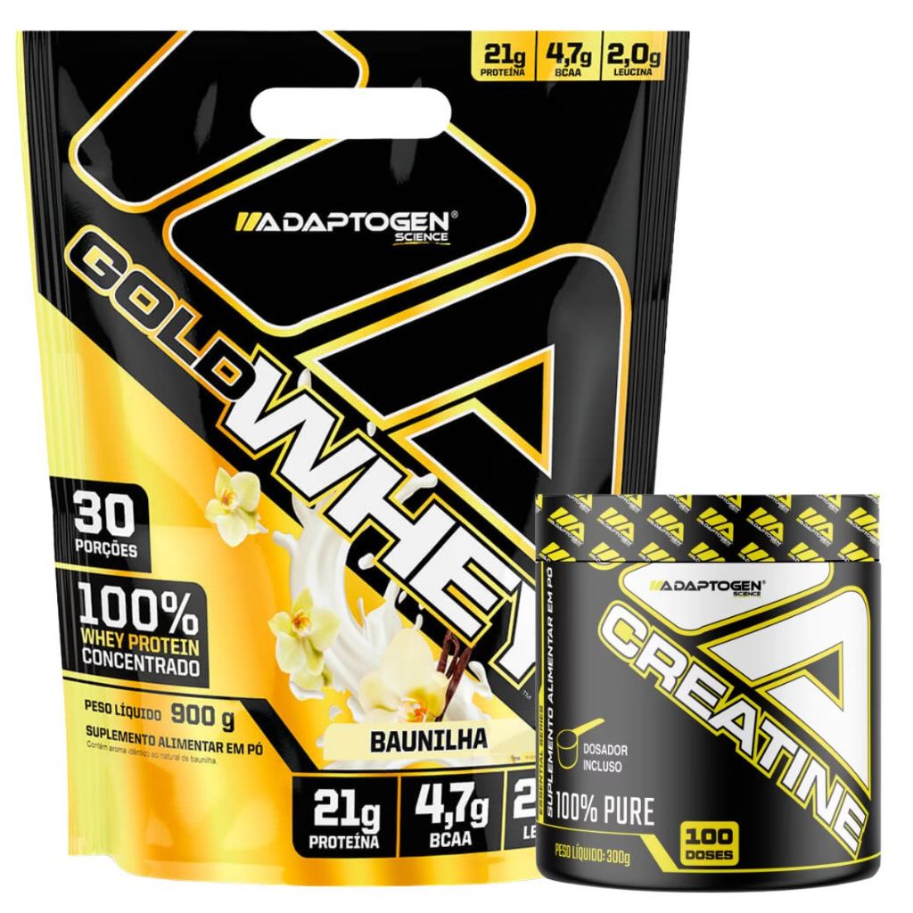 Gold Whey Refil 900g Sabores + Creatina 300g - Adaptogen