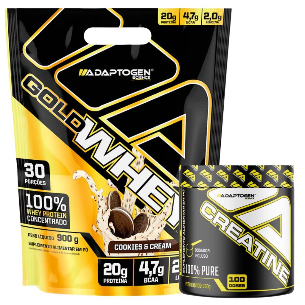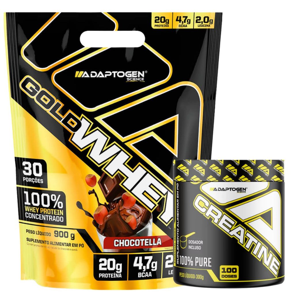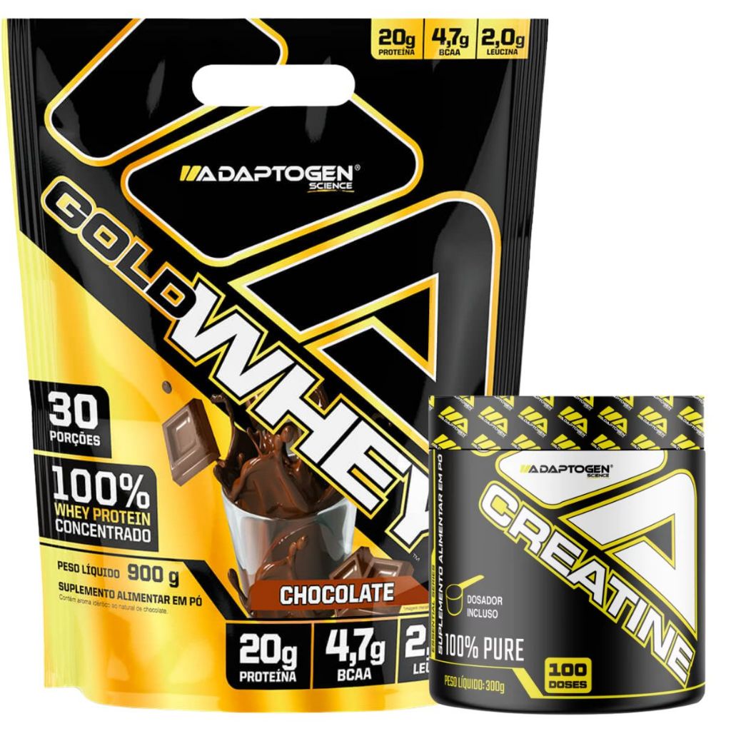 Gold Whey Refil 900g Sabores + Creatina 300g - Adaptogen