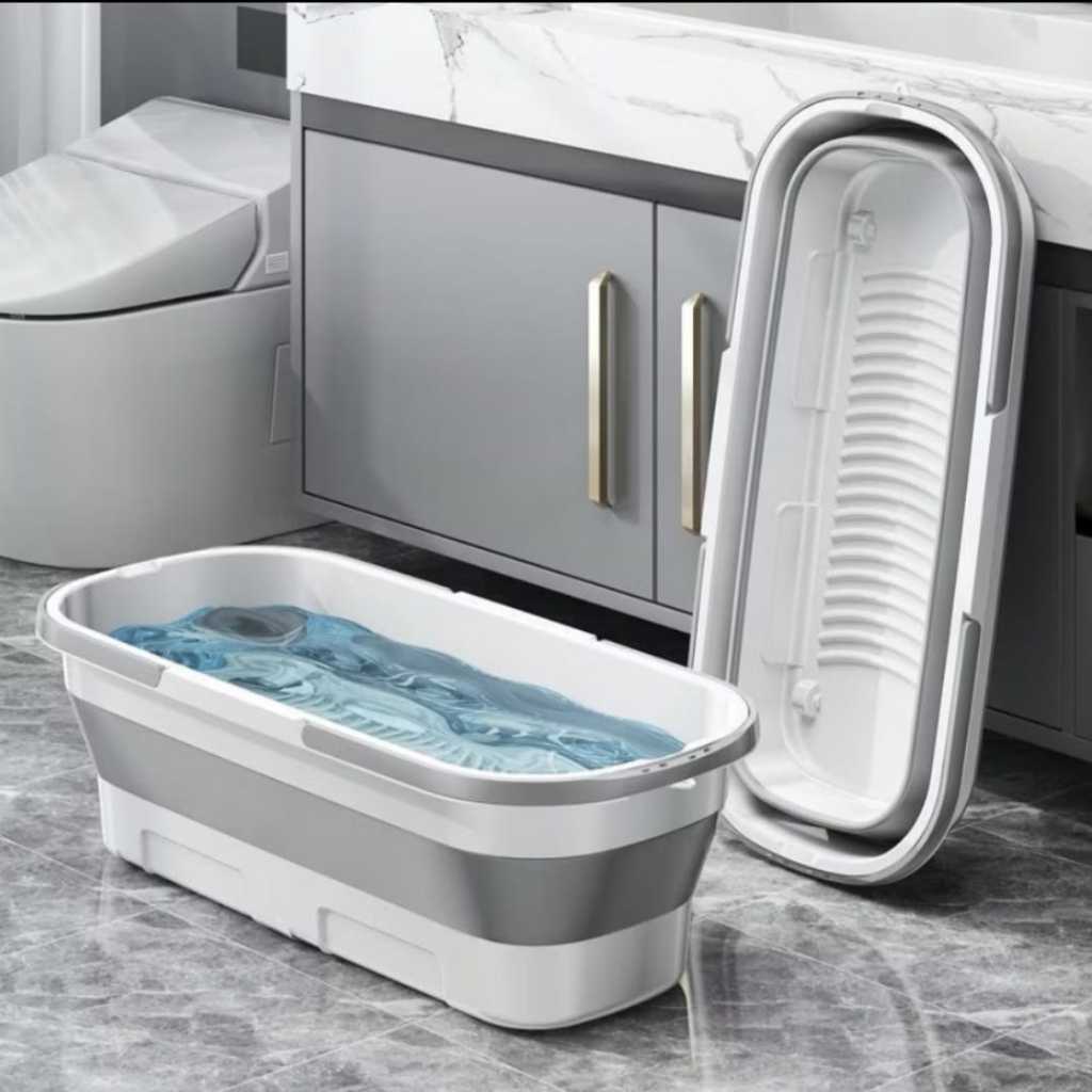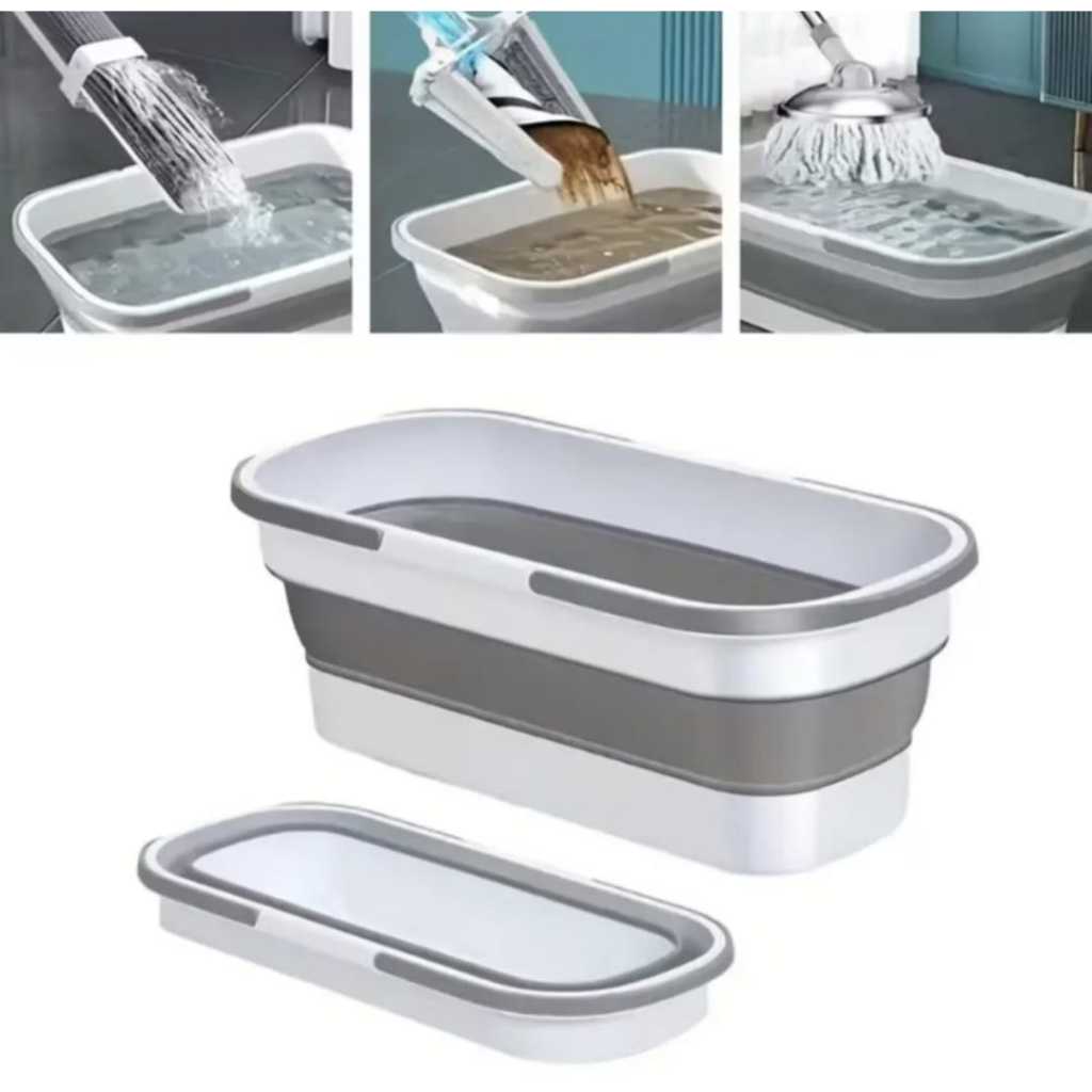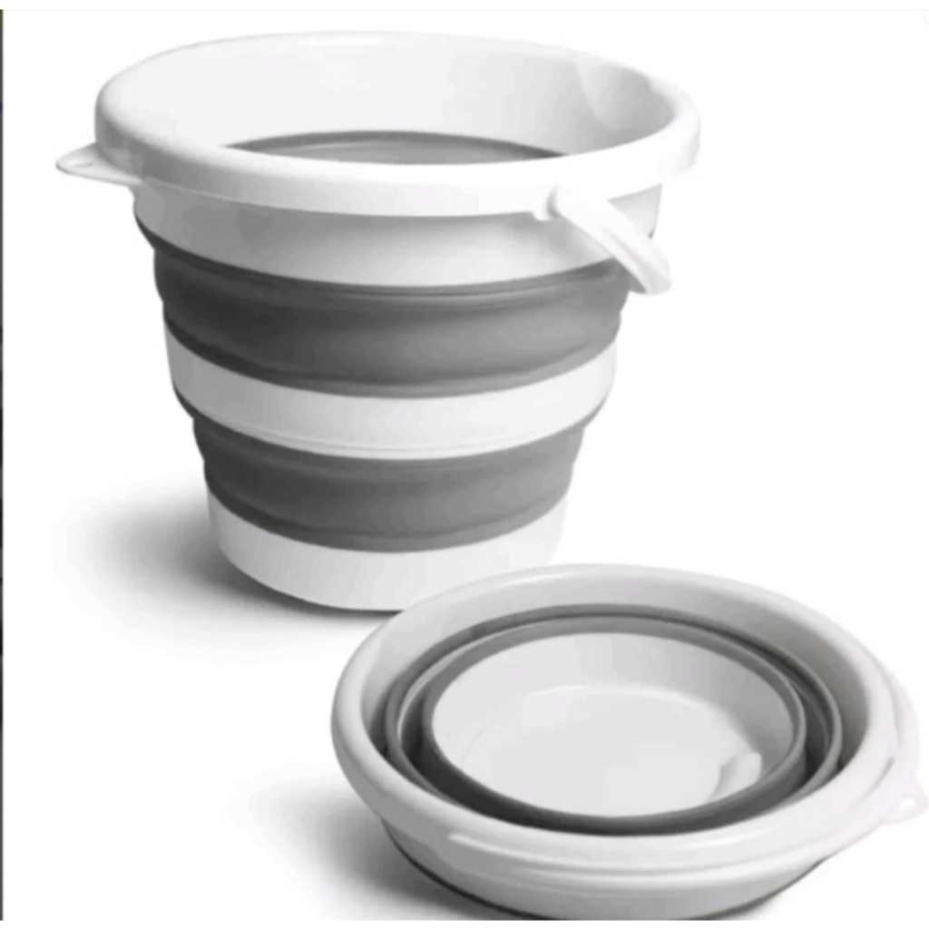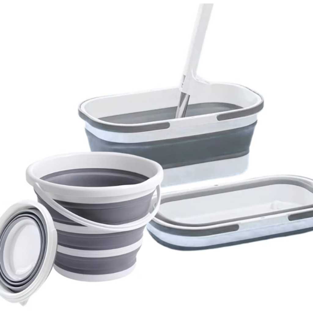 Kit Com Cesto 15 L Dobrável Retrátil Flexível Com Rodinha E Balde 10 Litros Lavanderia