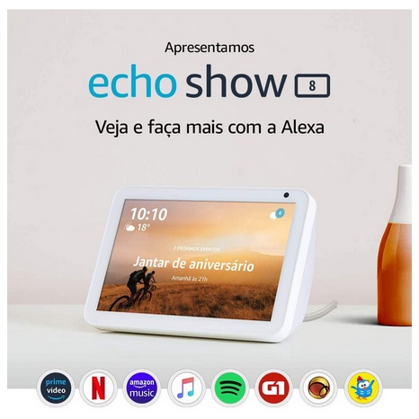 Amazon Echo Show 8 Smart Speaker 3 geração com Alexa, display integrado de 8" charcoal 110V/240V
