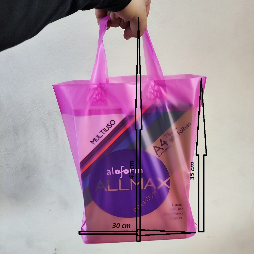 kit com 25 Sacolas plásticas Alça Fita tamanhos 27x30 , 30x35 e 40x40 em Alta Densidade para lojas