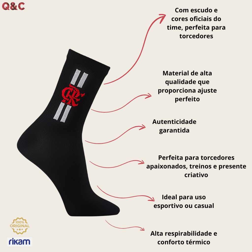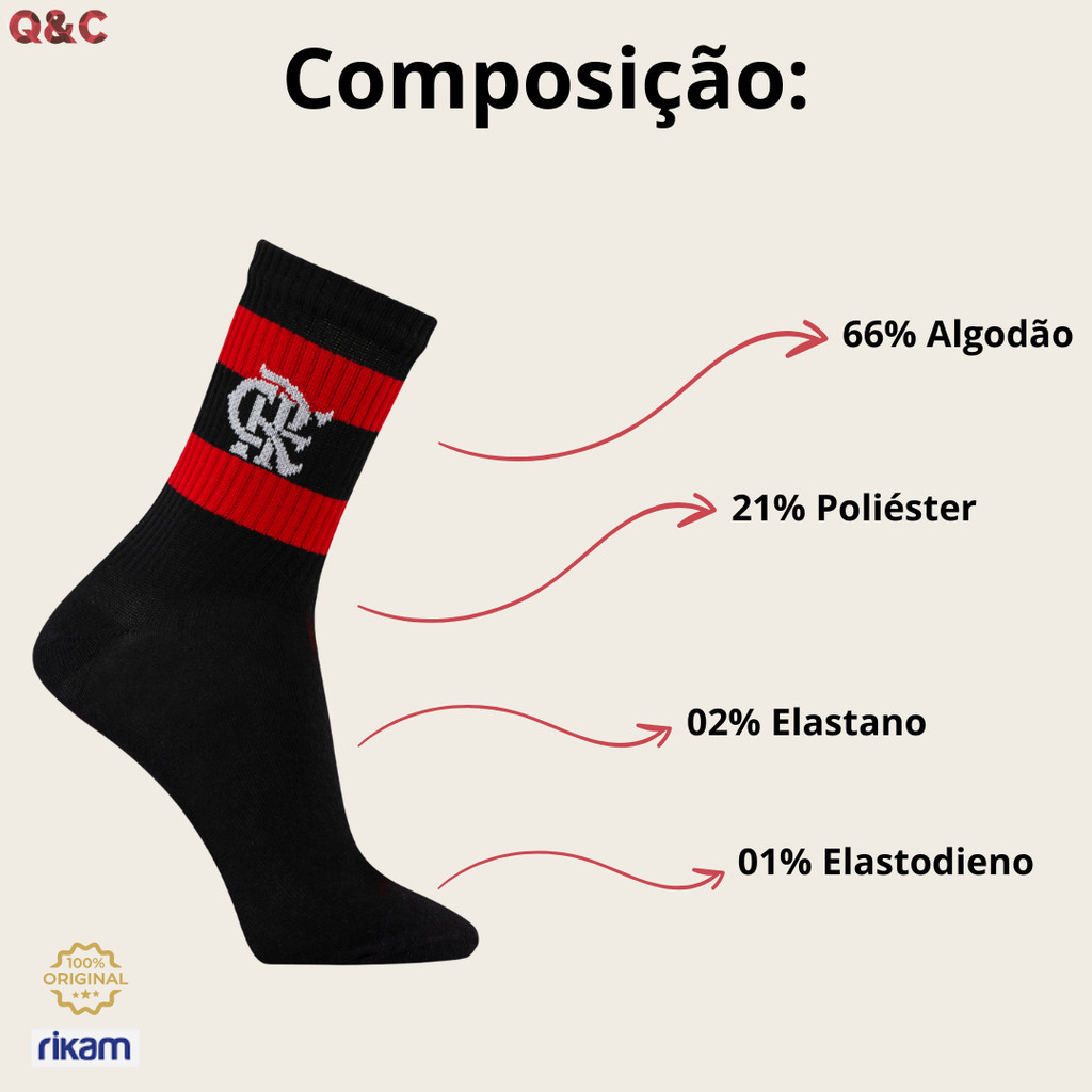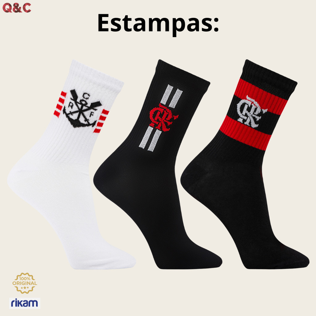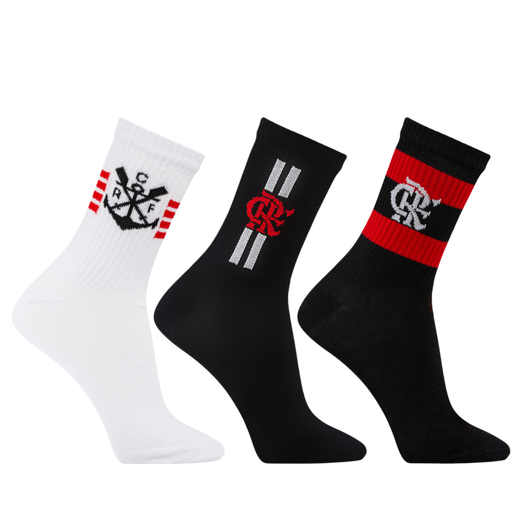 Kit 3 Meia Flamengo Esporte Adulto Oficial Licenciada