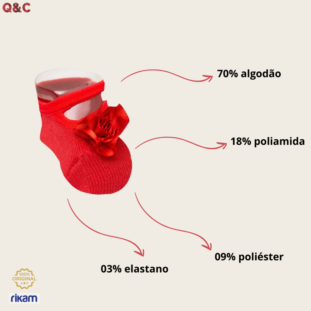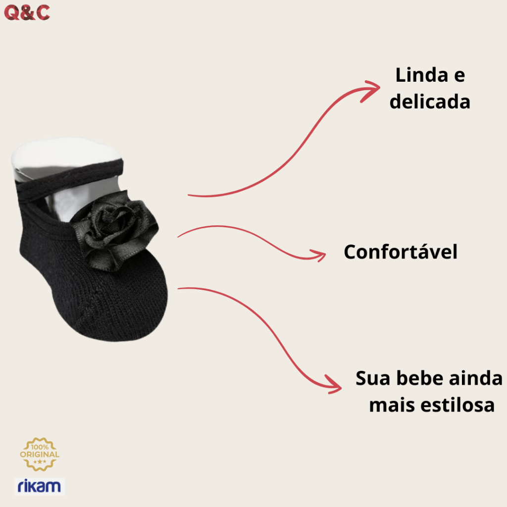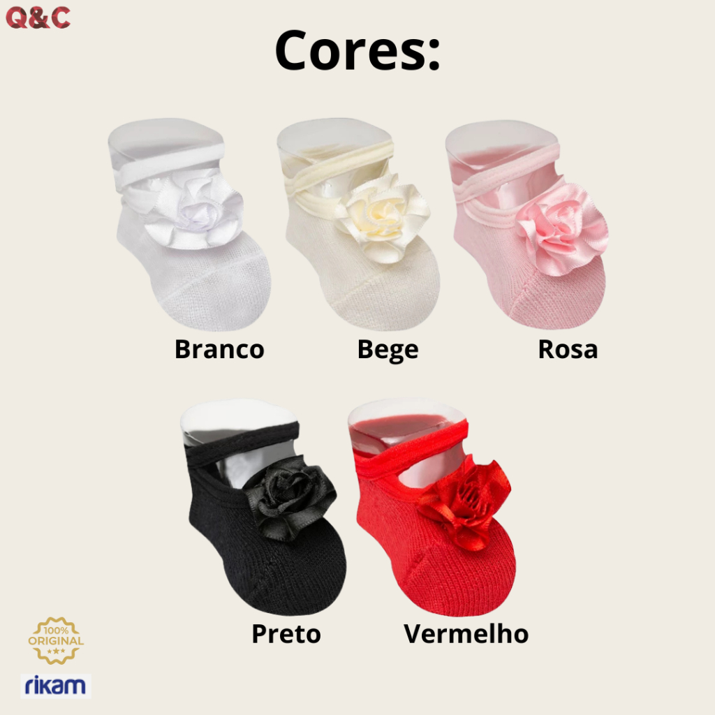 Kit 3 Meia Sapatilha Bebê Recém Nascido Flor RN 0-4 meses