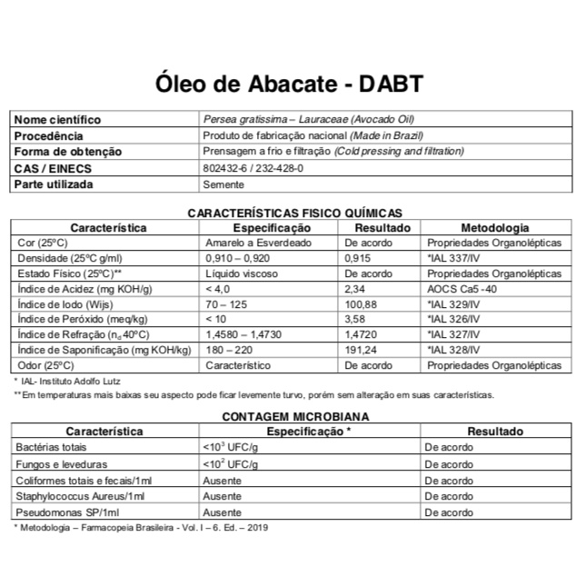 Óleo Vegetal de Abacate 100% Natural e Puro | Ação antienvelhecimento, Brilho Capilar | Extração a frio