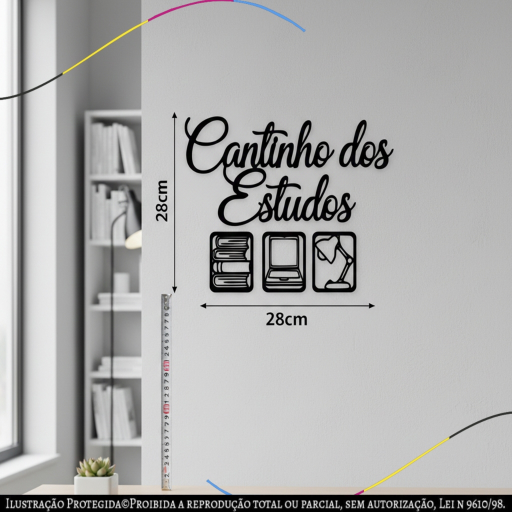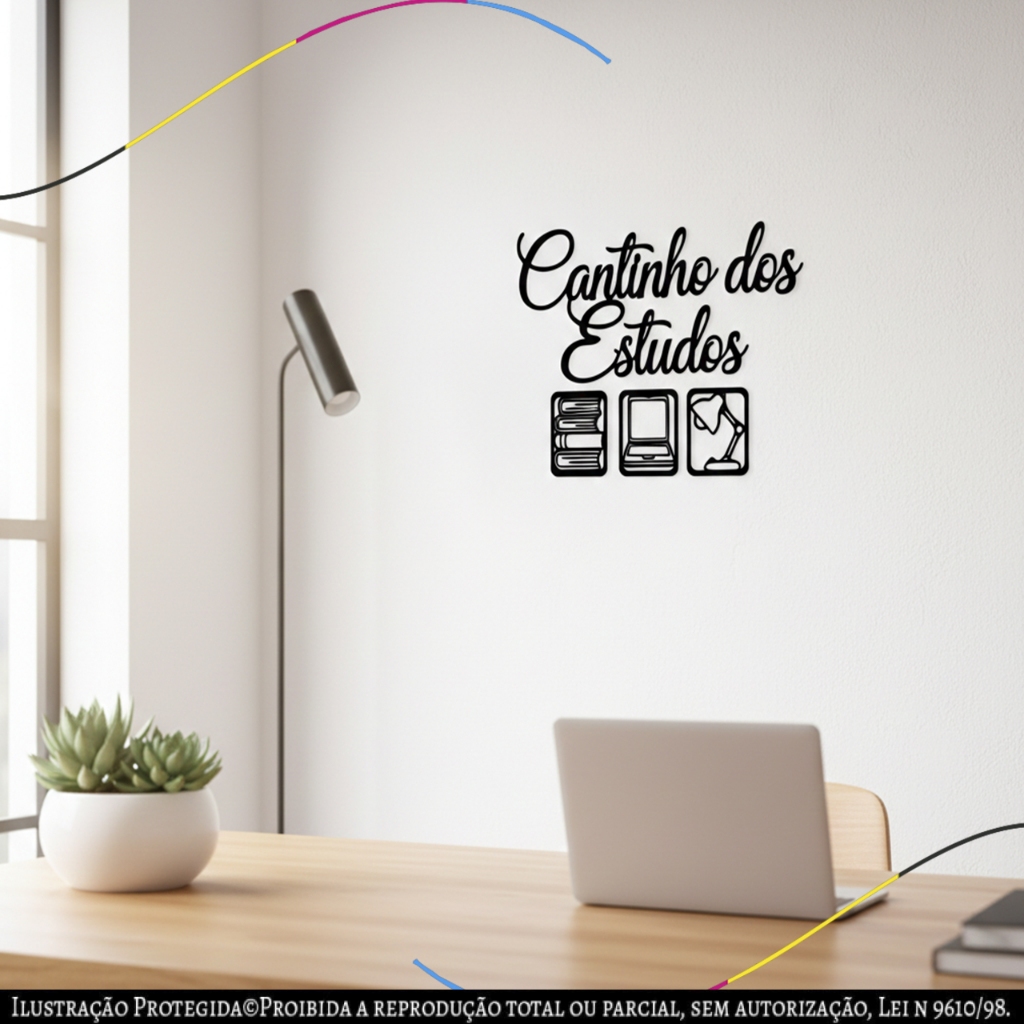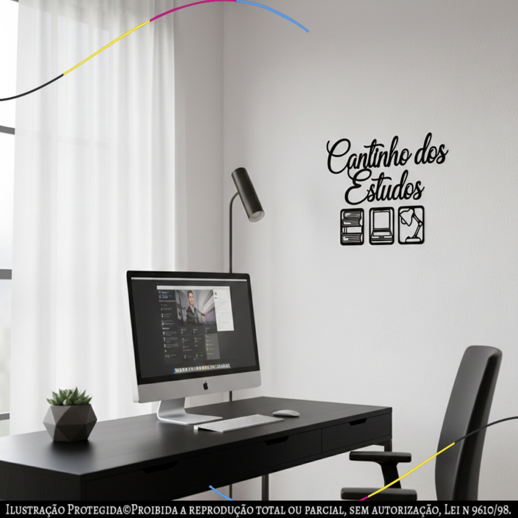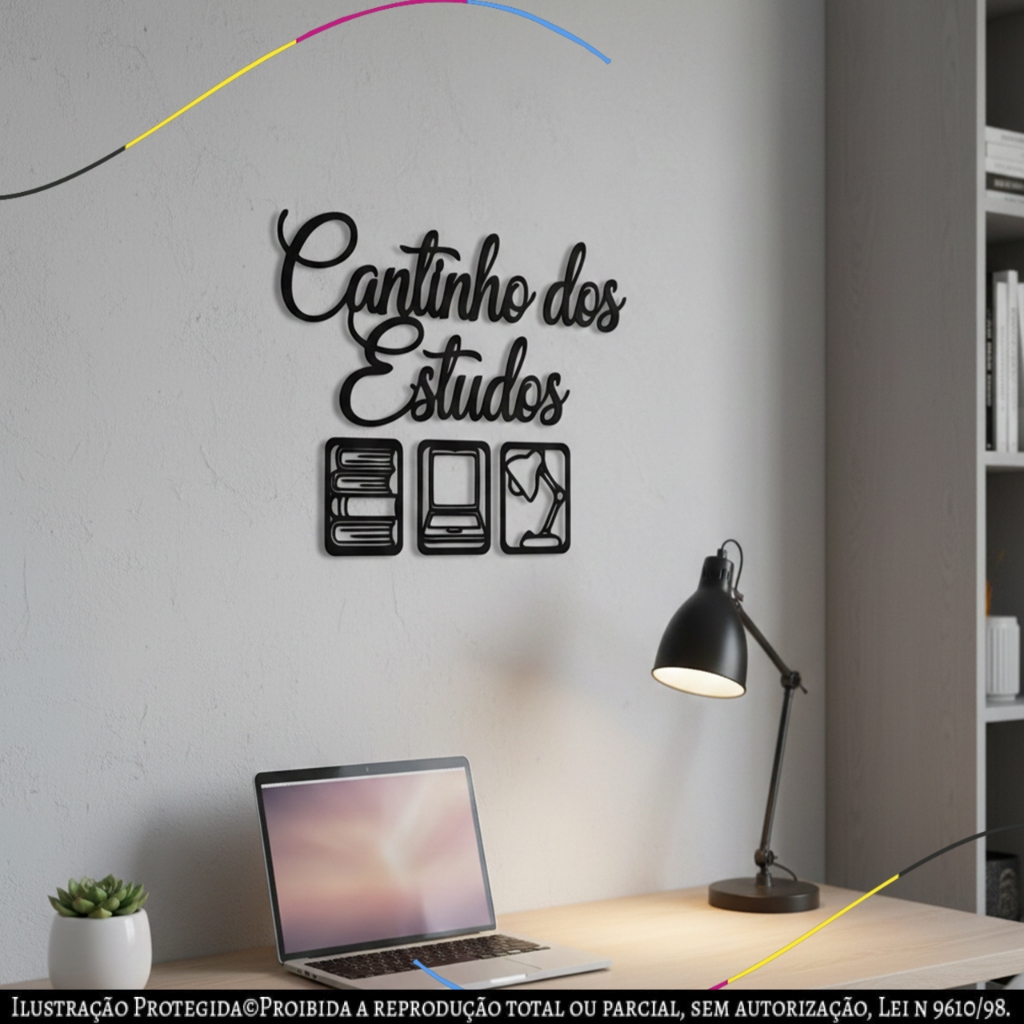 Placa Decorativa Cantinho dos Estudos Design Moderno Preto Fosco Prata quadro mdf