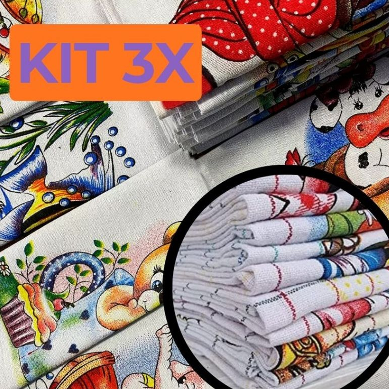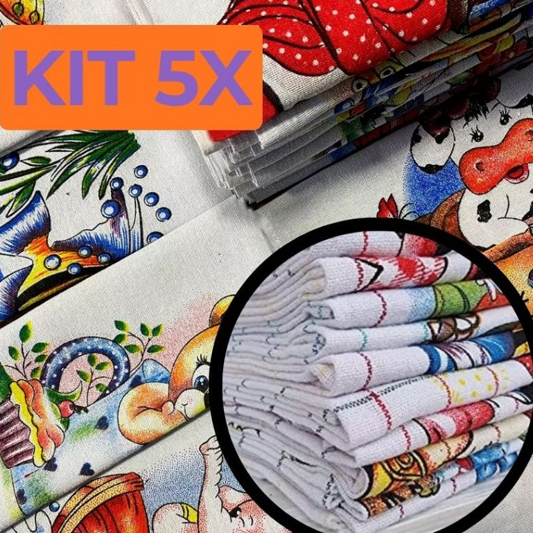KIT 10 Pano de Prato Estampado 80x50cm GIGANTE Panos de Copa Cozinha Algodão Premium Atacado