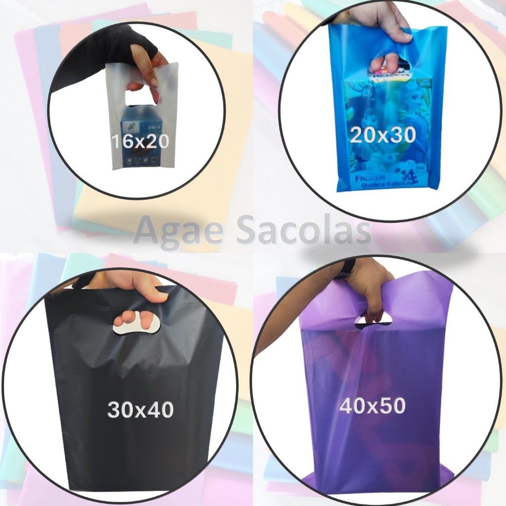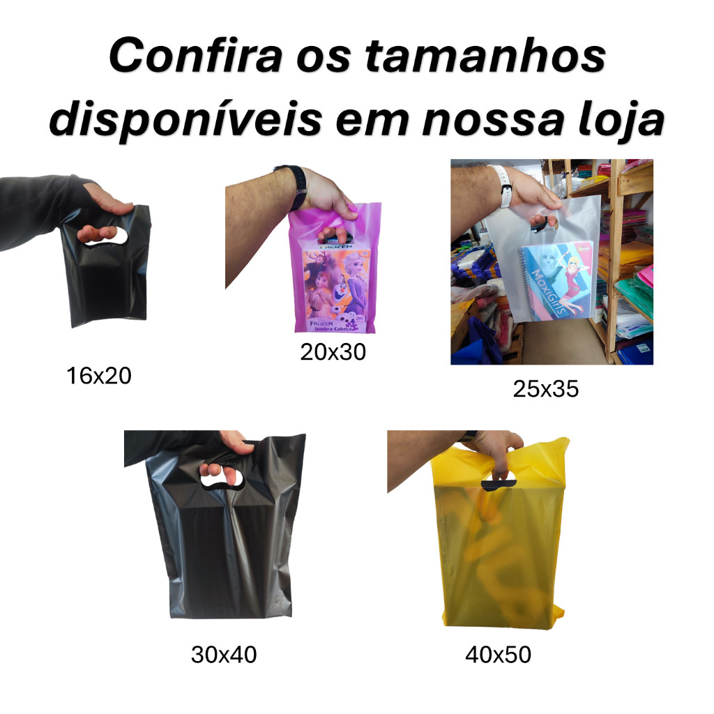 Meio Quilo de sacolas plásticas 40x50 transparente fosca, boca triste