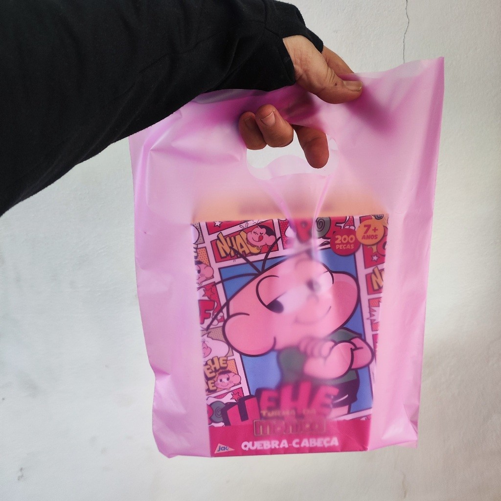 kit 50 Sacolas plásticas Boca de palhaço Vazada Transparente & Coloridas fosca, ( material premium)