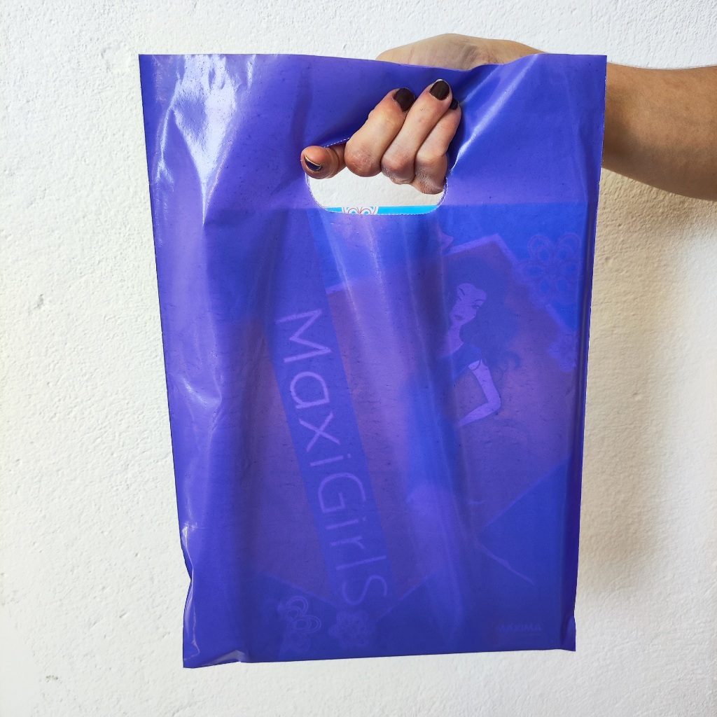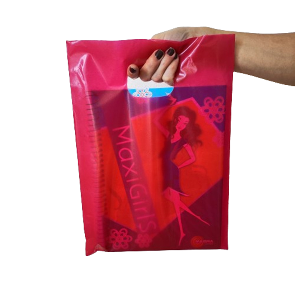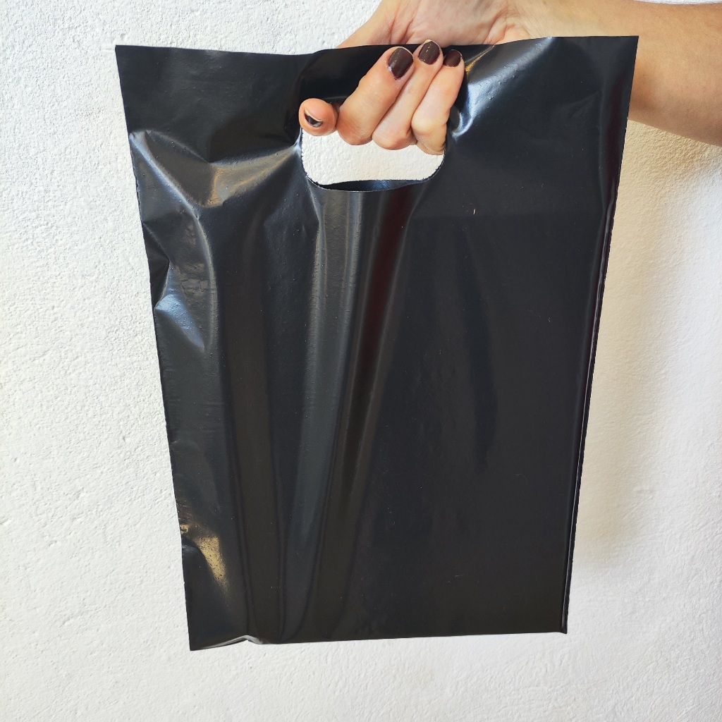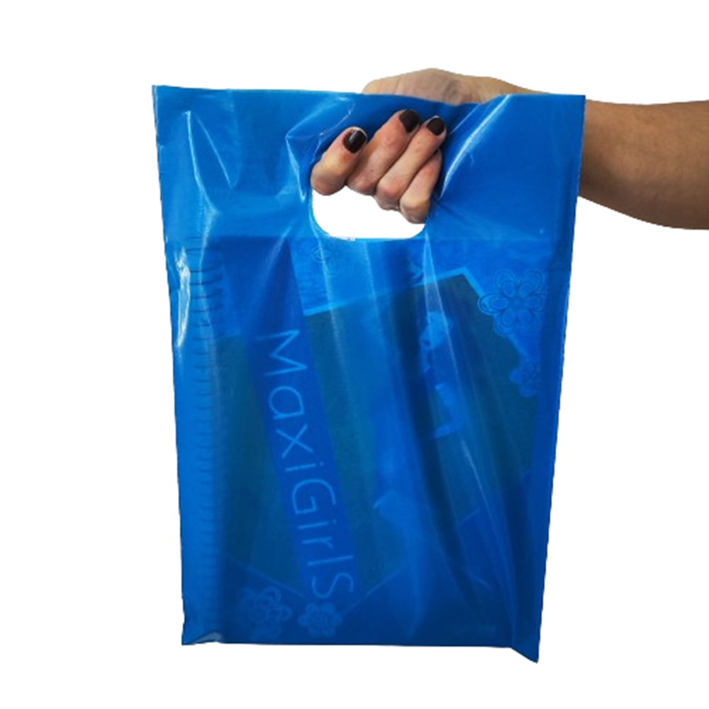 kit com 100 Sacolas Plásticas 25x35 Alça Boca De Palhaço Vazada reta.