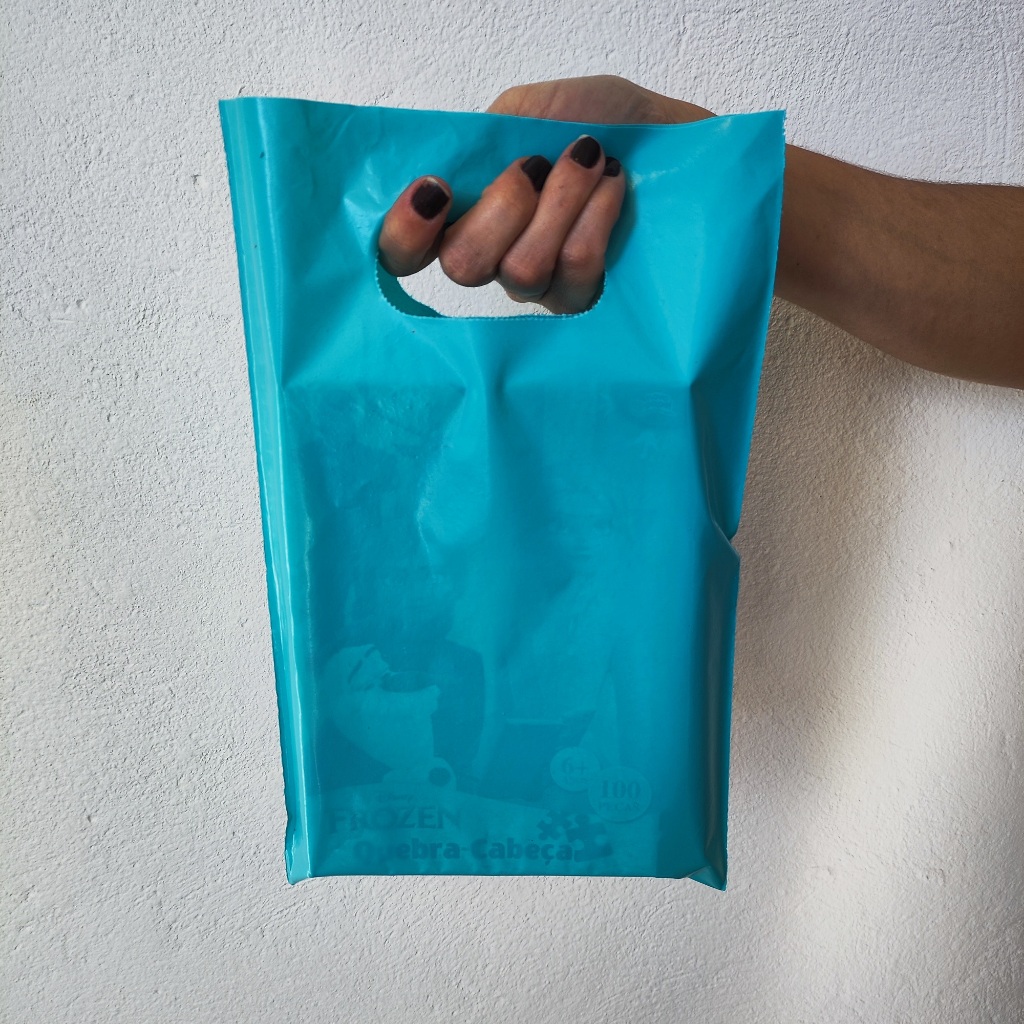 kit com 100 Sacolas Plástica 20x30 Alça Boca De Palhaço para lojas