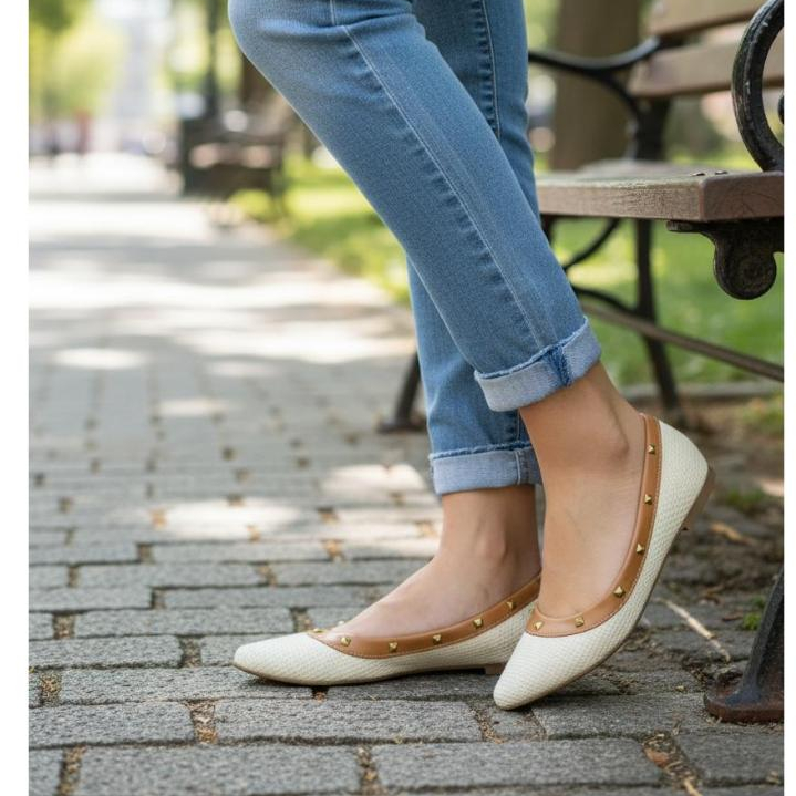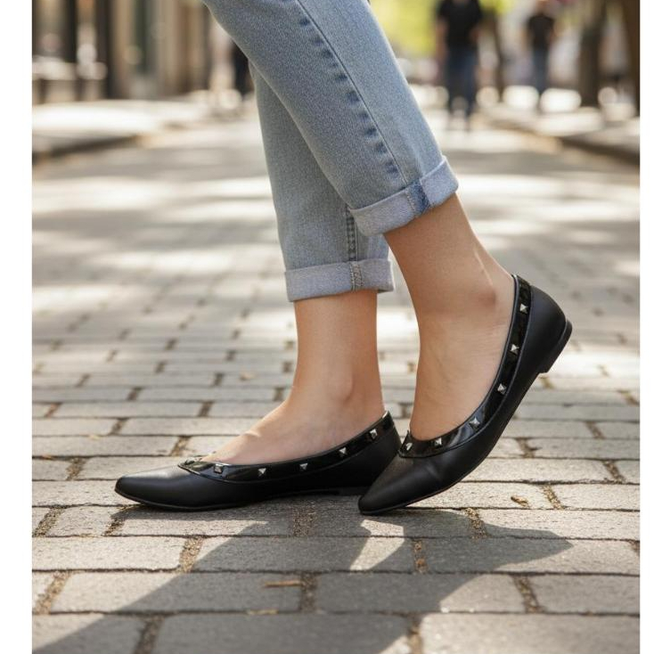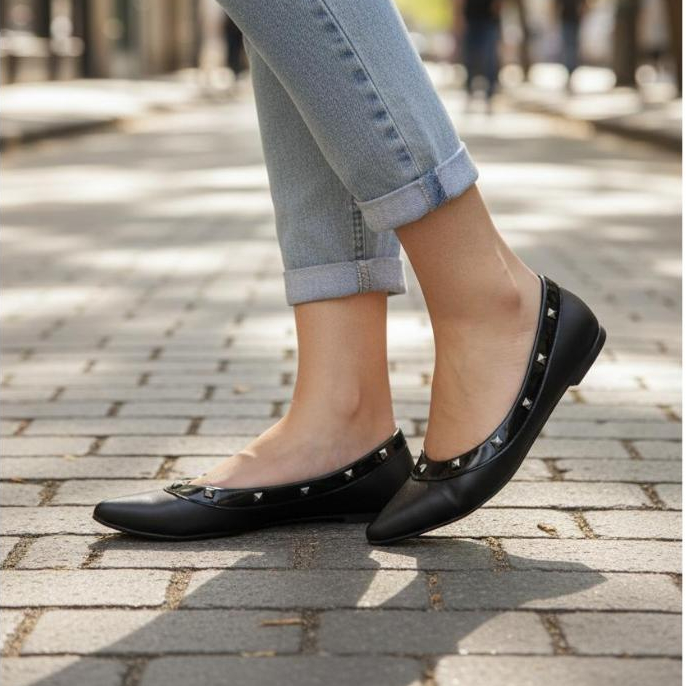 Sapatilha Feminina Bico Fino Detalhe Pirâmide Confortável Cores Básicas Ref:019.1984