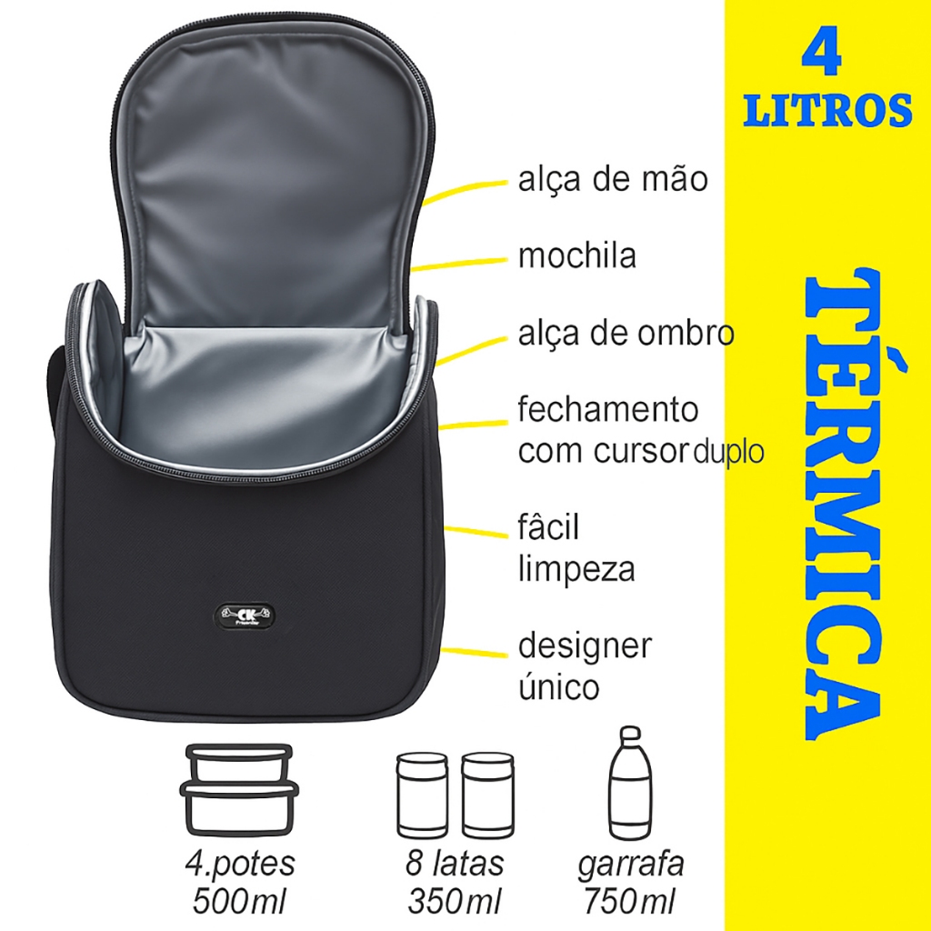 Lancheira Termica Alça Mochila Escolar Adulto Infantil Masculina Azul Discreta Ck Presentes