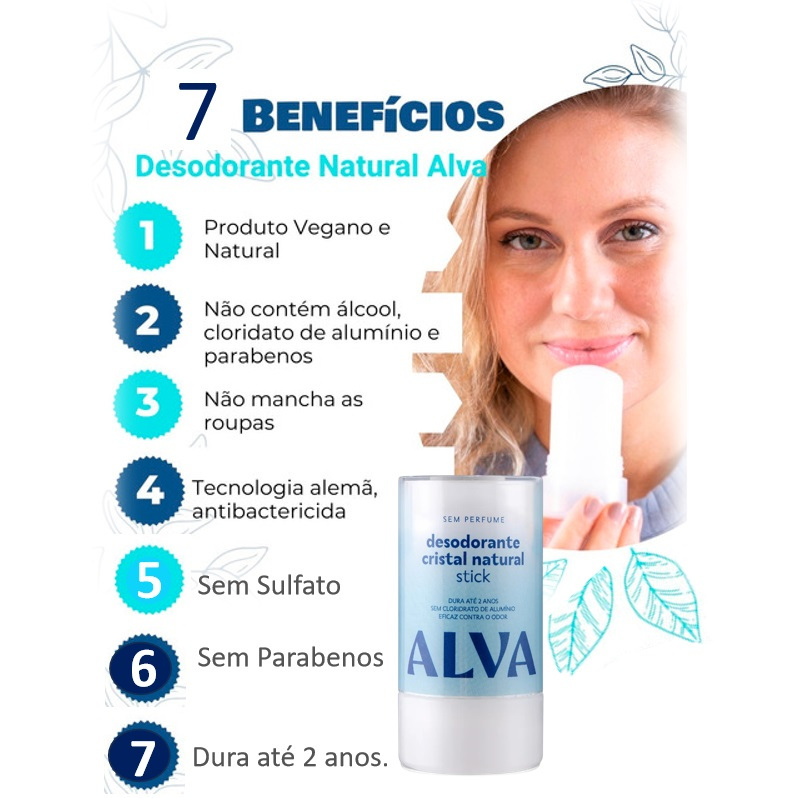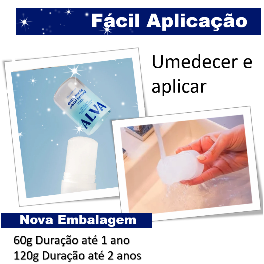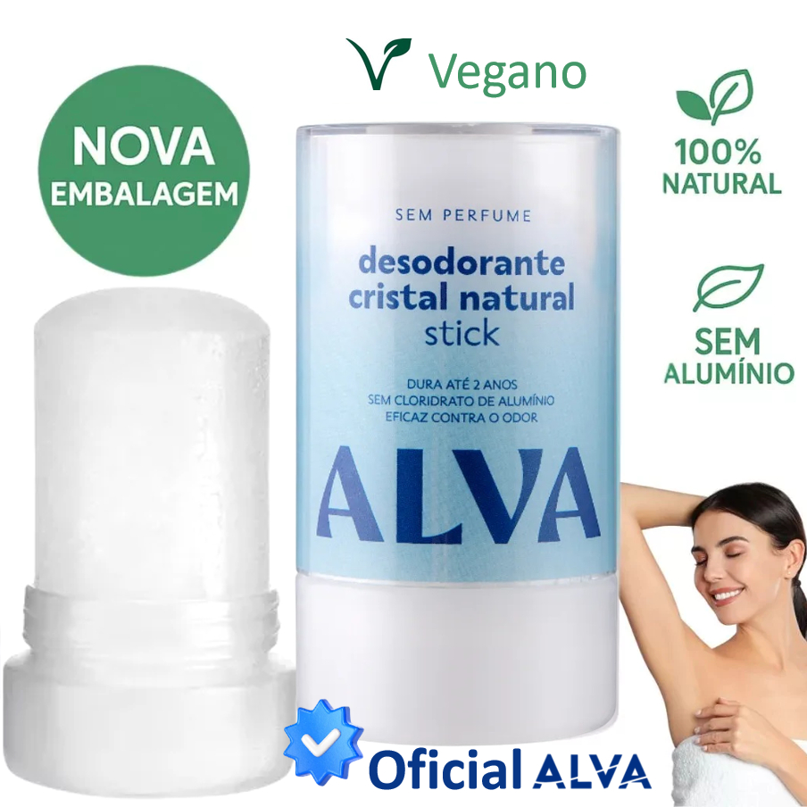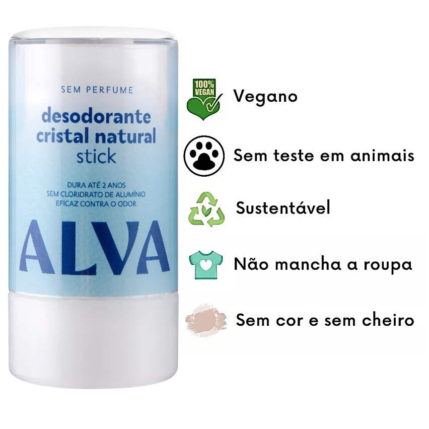 Alva Desodorante Cristal 120g Natural Stick pedra sal sem cheiro alumínio parabenos perfume vegano