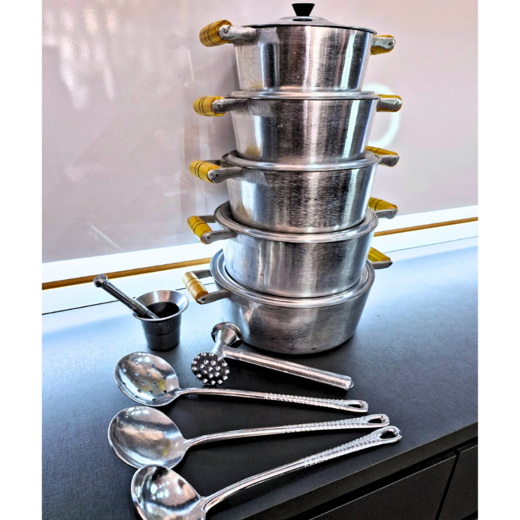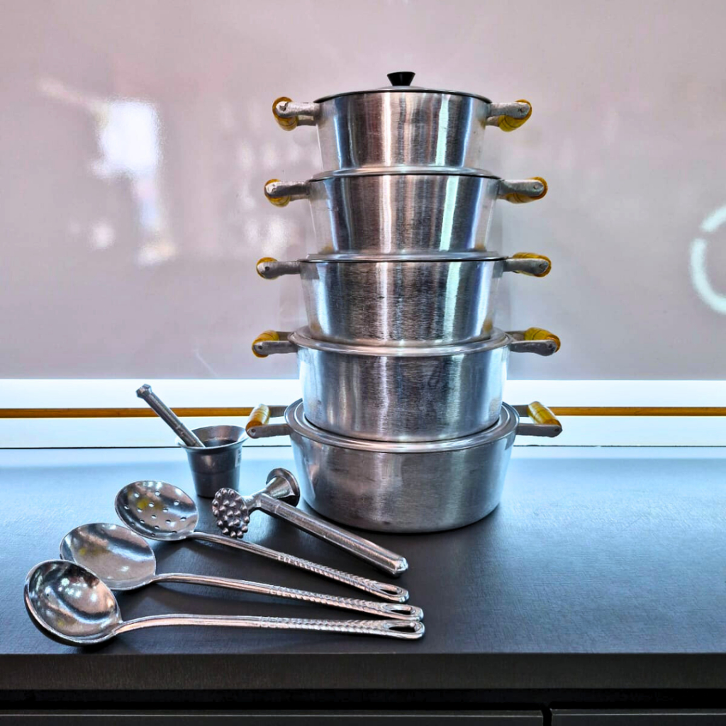 Jogo de panelas com 10 peças em alumínio batido Tamanho 18ao26