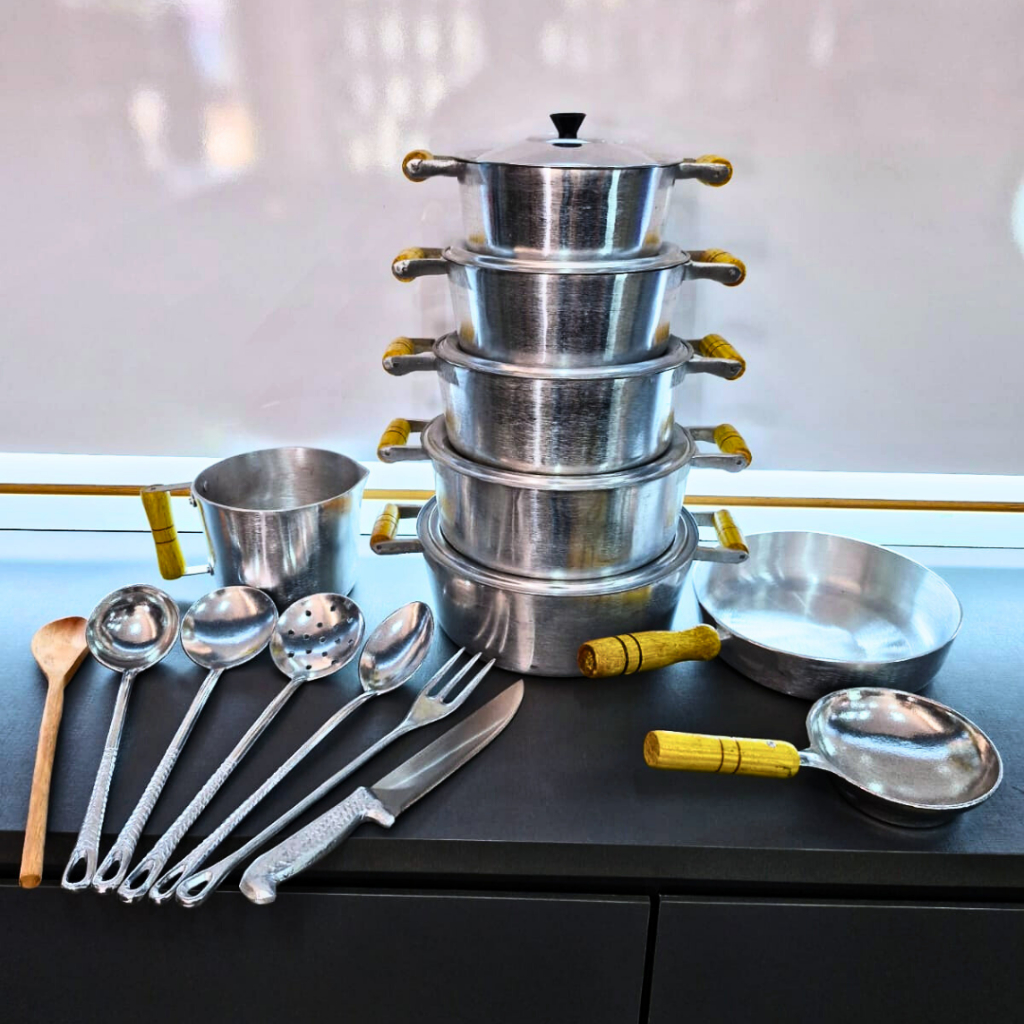 Jogo Panelas 15 Peças Grossas Alumínio Batido Fundido Grosso