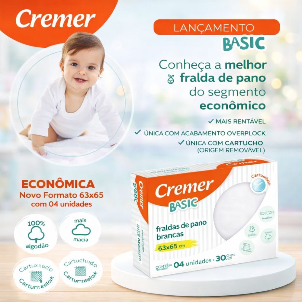 Fralda de Pano Branca Basic 65x63cm Caixa com 4 Unidades Bebê