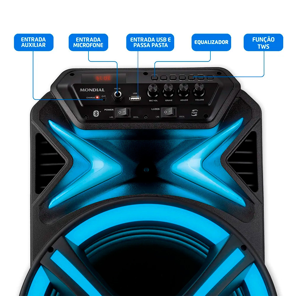 Caixa de Som Mondial CM-550-L X Sound Amplificada 550W RMS Bivolt
