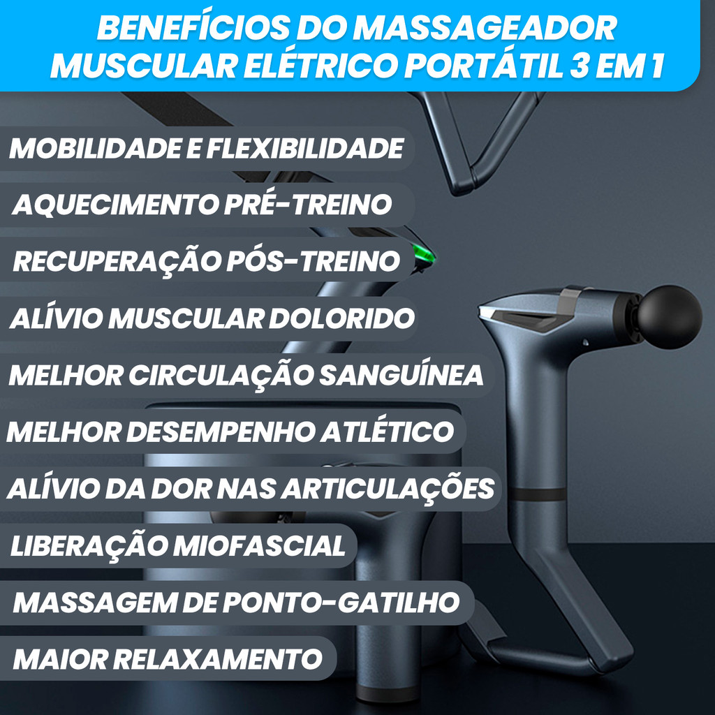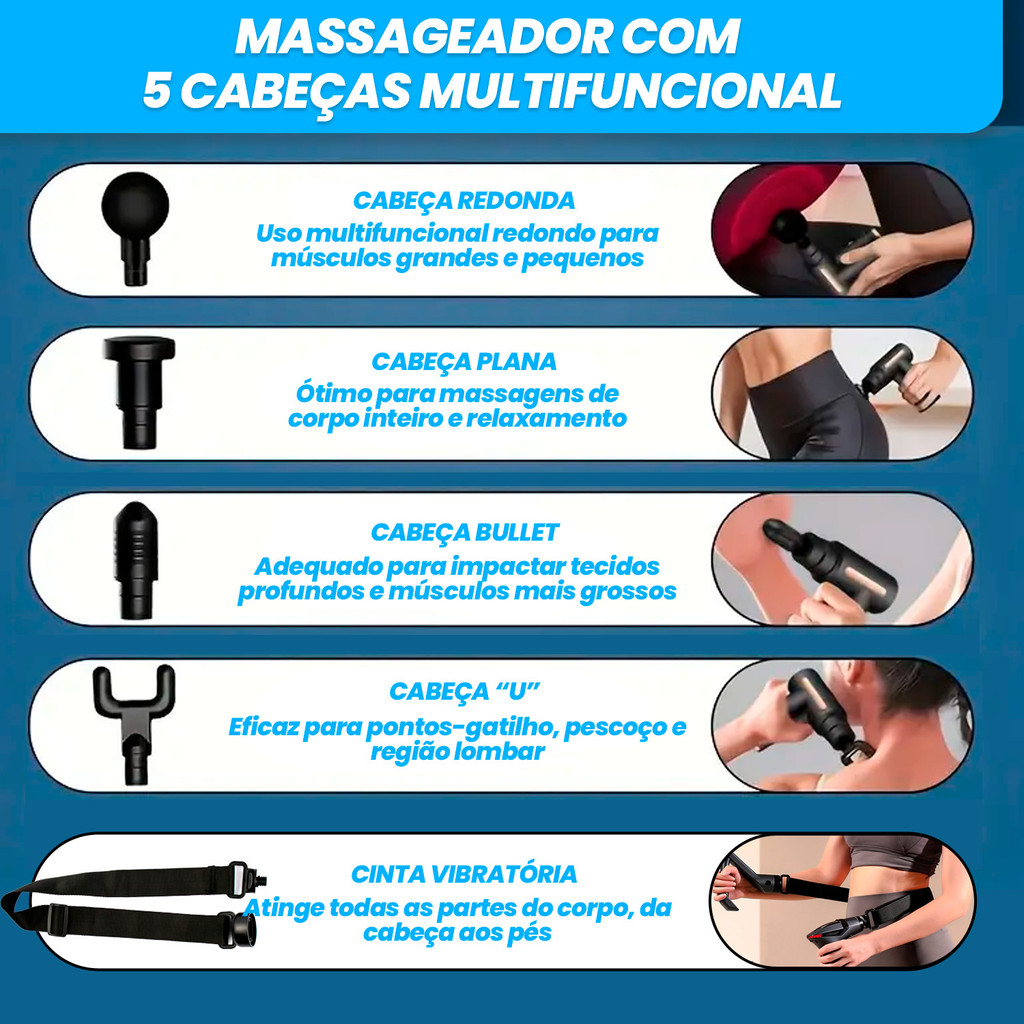 Massageador Pistola Profissional Miofacial 5 em1 Cabo Longo pra Costas Drenagem Massagem Corporal
