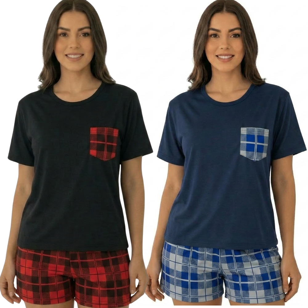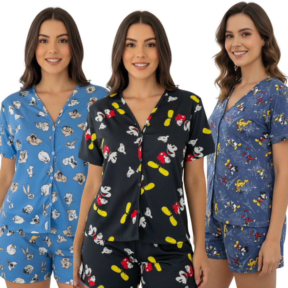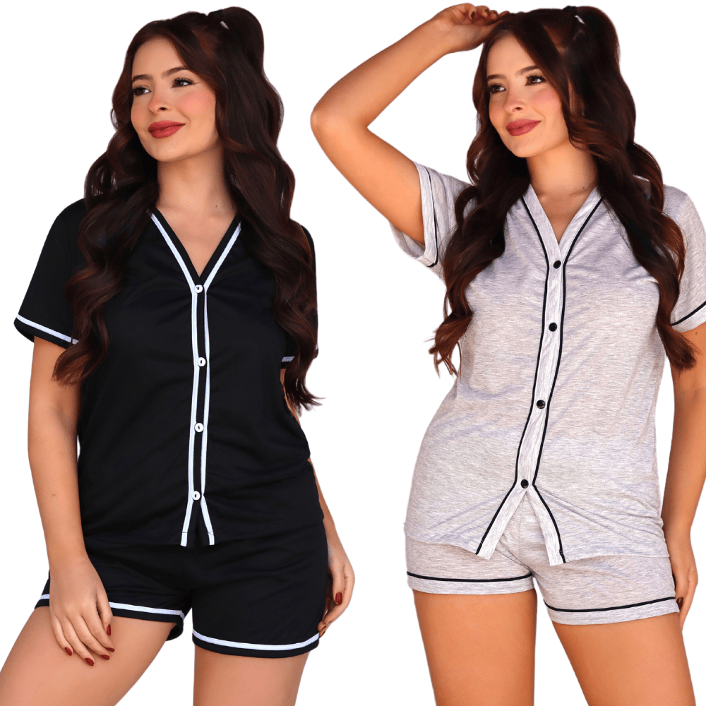 Kit 2 Pijama Feminino Aberto Americano com Botão Conforto/Conjunto de Dormir Feminino Malha Leve Confortável Verão