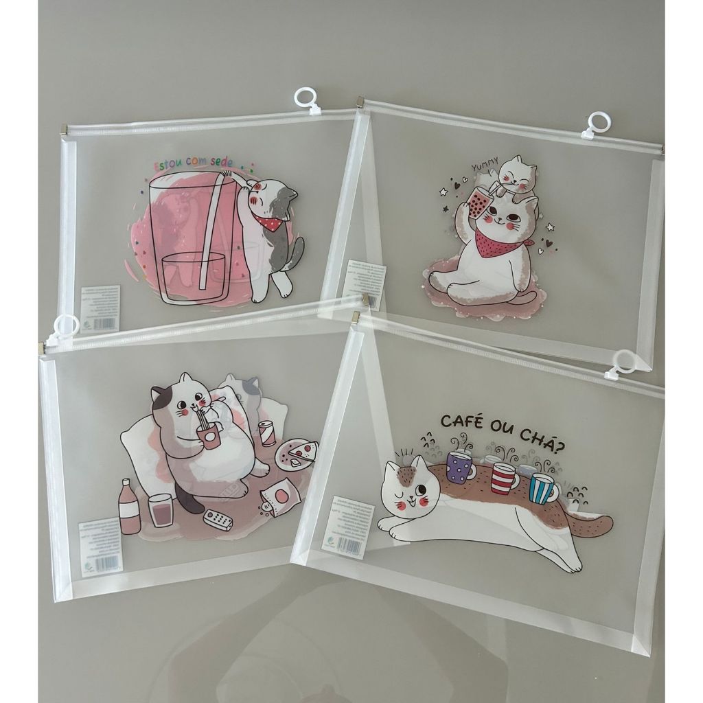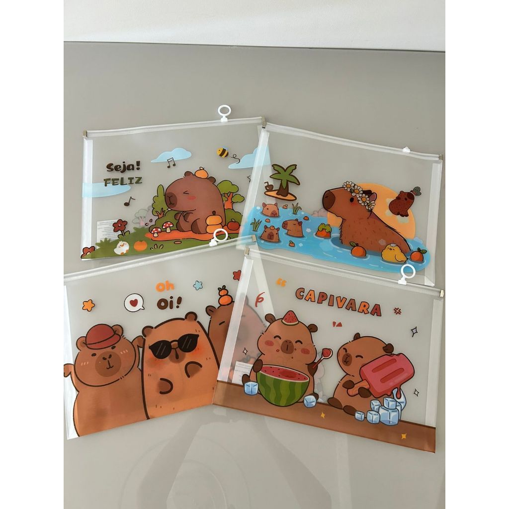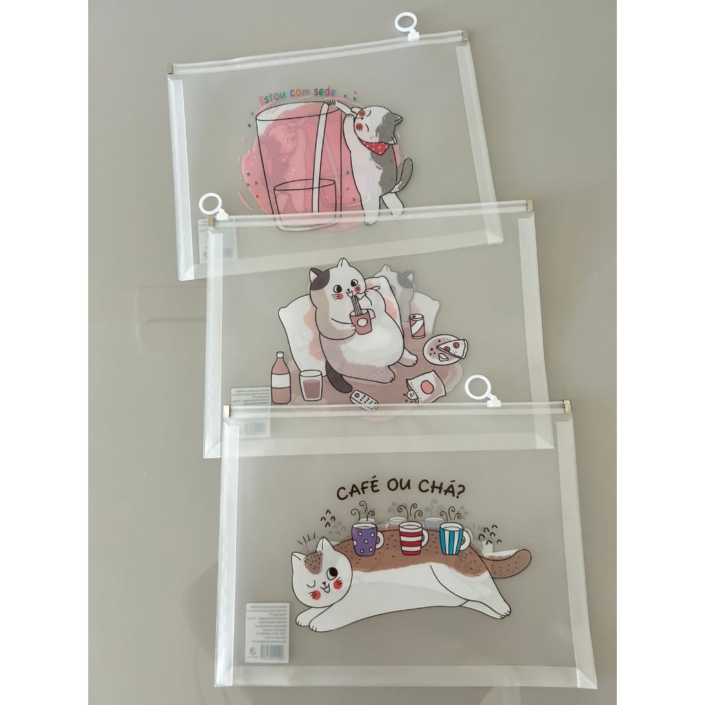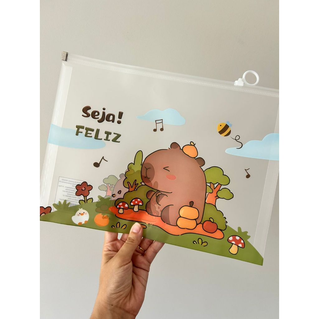 Pasta Documentos Astronauta Capivara Gatinho Dinossauro Infantil A4 Fecho Pasta de Plástico Papelaria