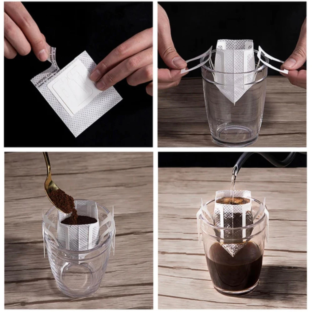 Kit Mini Filtro Coador Café Papel Individual Descartável Drip Coffe Xícara Única Portátil
