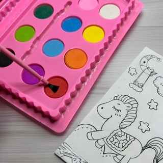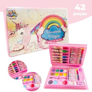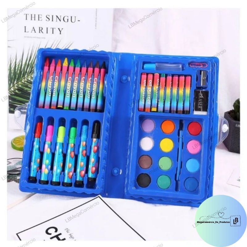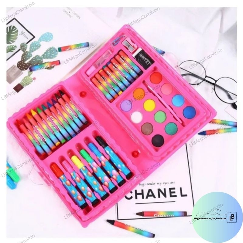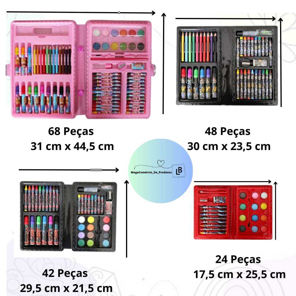 Estojo de Pintura Infantil com Maleta Canetinhas Lápis de Cor e Aquarela Desenhos Para Colorir