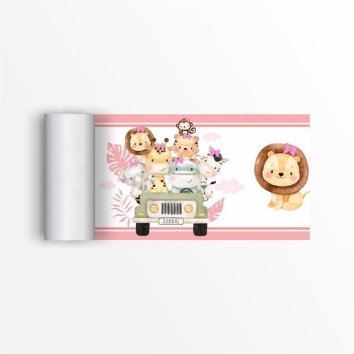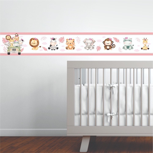 Faixa Decorativa Infantil Menina Rosa Bebê Safari Animais