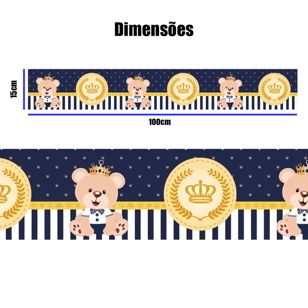 Faixa Decorativa Adesiva Urso Principe Azul Marinho Infantil P/ Quarto Criança Papel de Parede