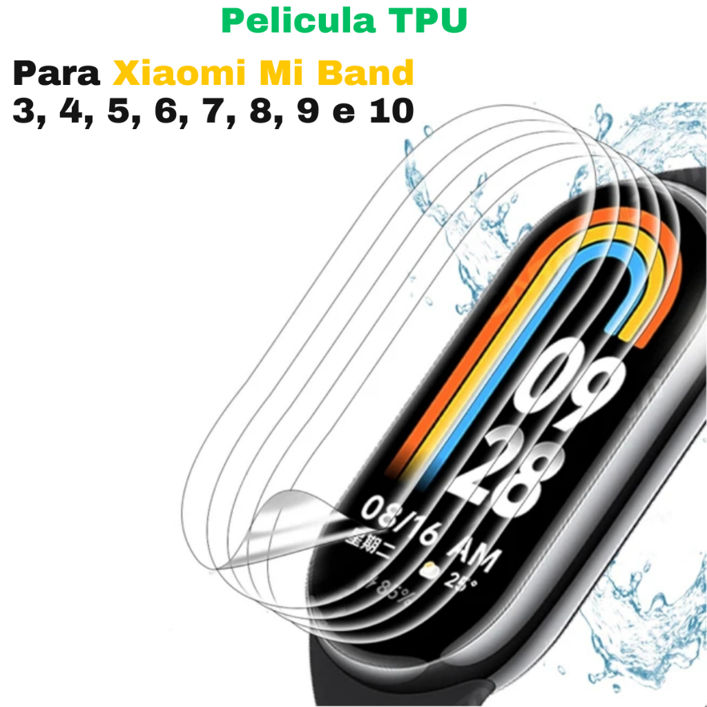 Película Proteção Tela TPU Anti Riscos Para Smartwatch Xiaomi Mi Band 4, 5, 6, 7, 8, 9, 10