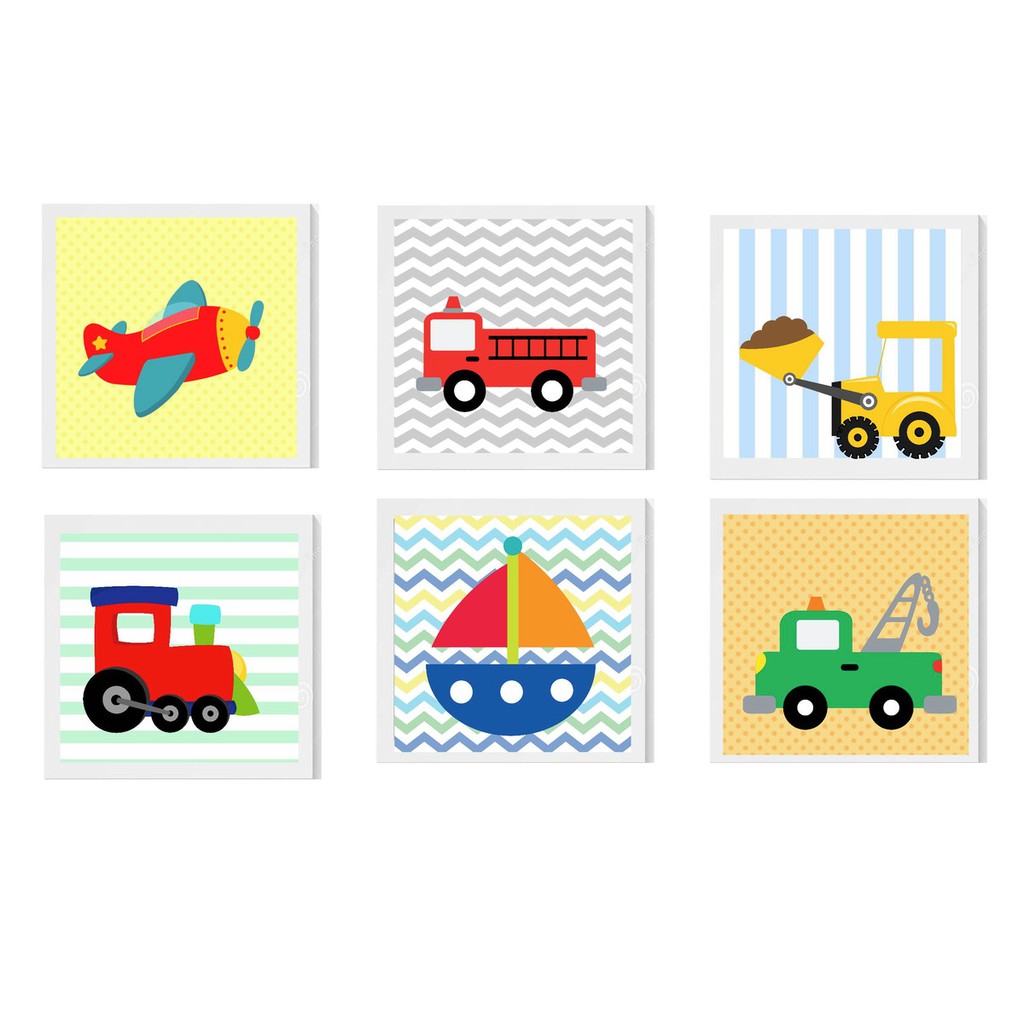 Kit Placas Quadros Decorativo Infantil Quarto Menino 6 peças MDF Brinquedos Carro Avião Barco