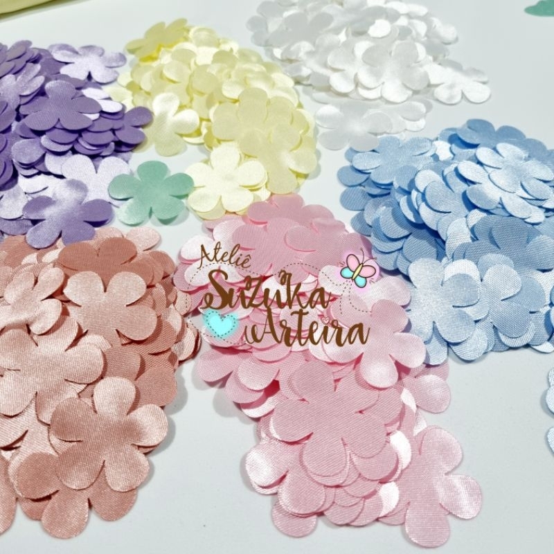 kit com flores e borboletas de cetim recorte a laser