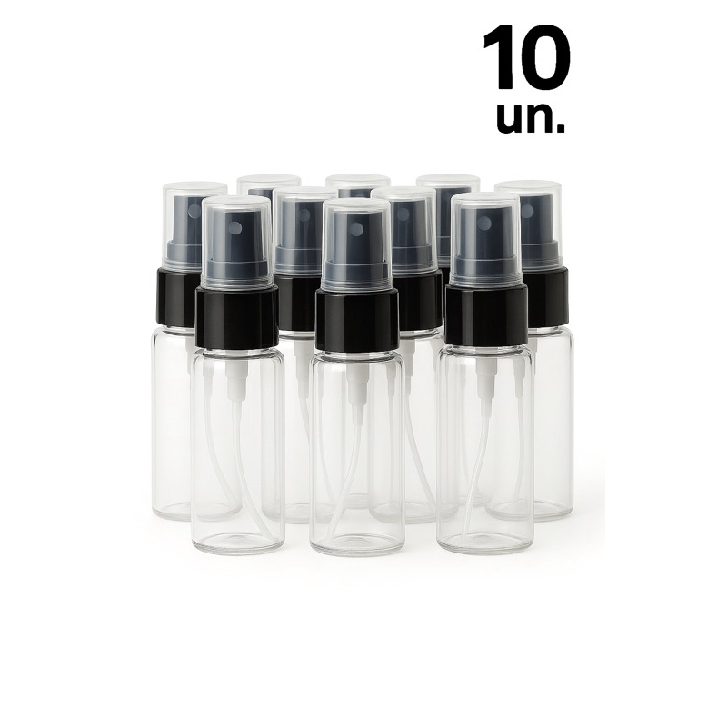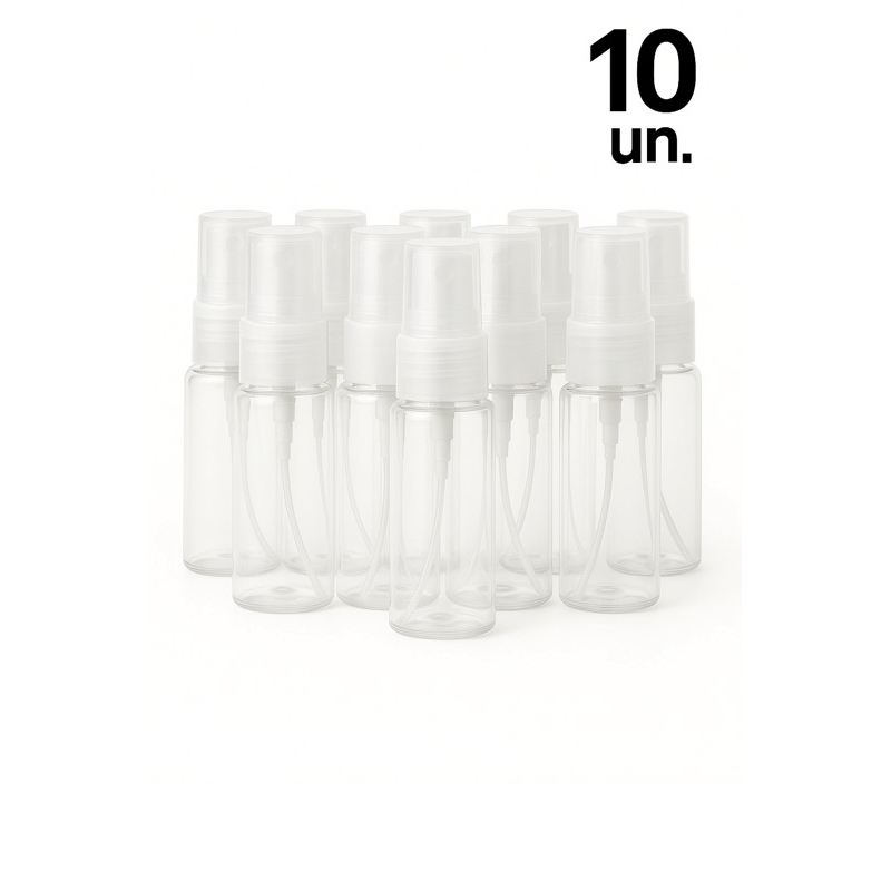 Kit 10 Frascos PET 20Ml com Válvula Spray R18/410 – Para Perfumes, Aromatizadores, Cosméticos