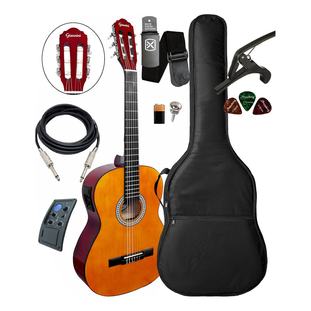 Violão ELE/AC Giannini N-14 Eq Náilon C/ Capa Luxo E Kit