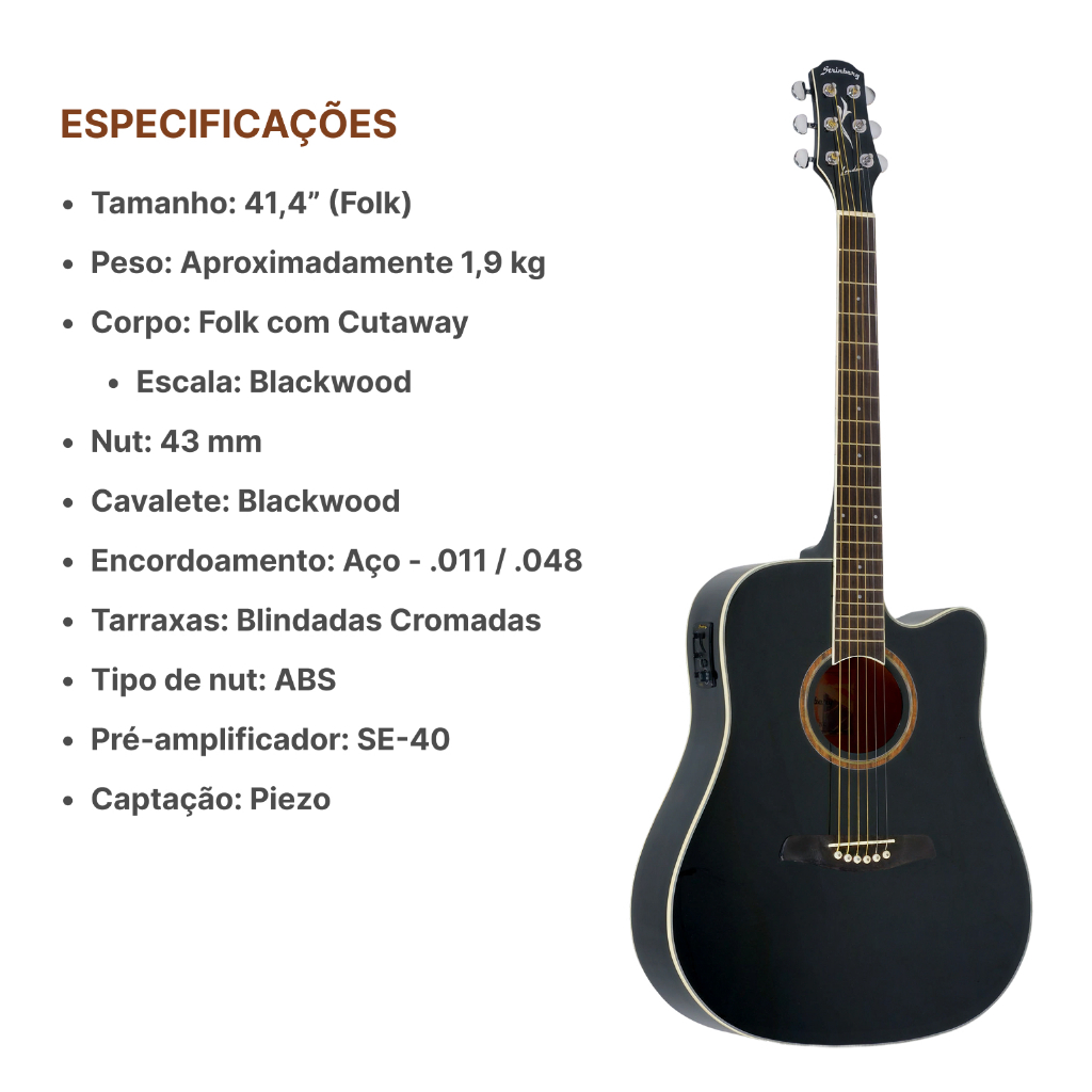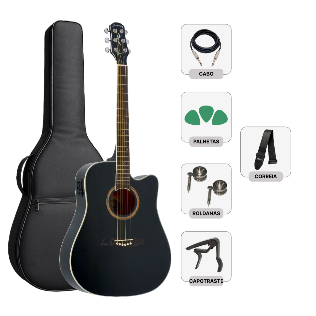 Violão Strinberg Folk Bk Elétrico Le30c Kit Capa Acessorios