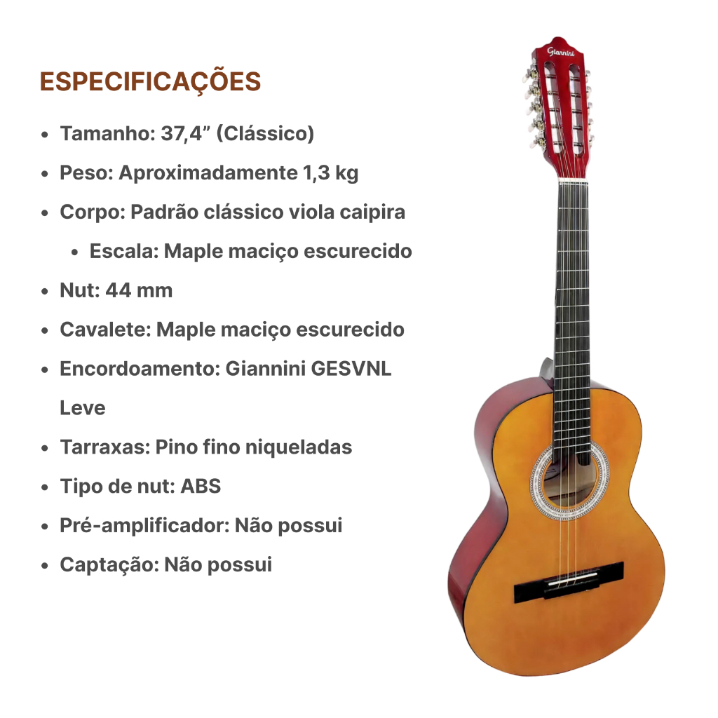 Kit Viola Eletrica Giannini Vs14 Natural Captador Acessorios