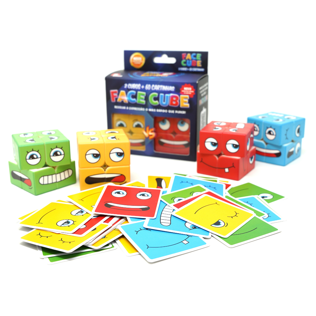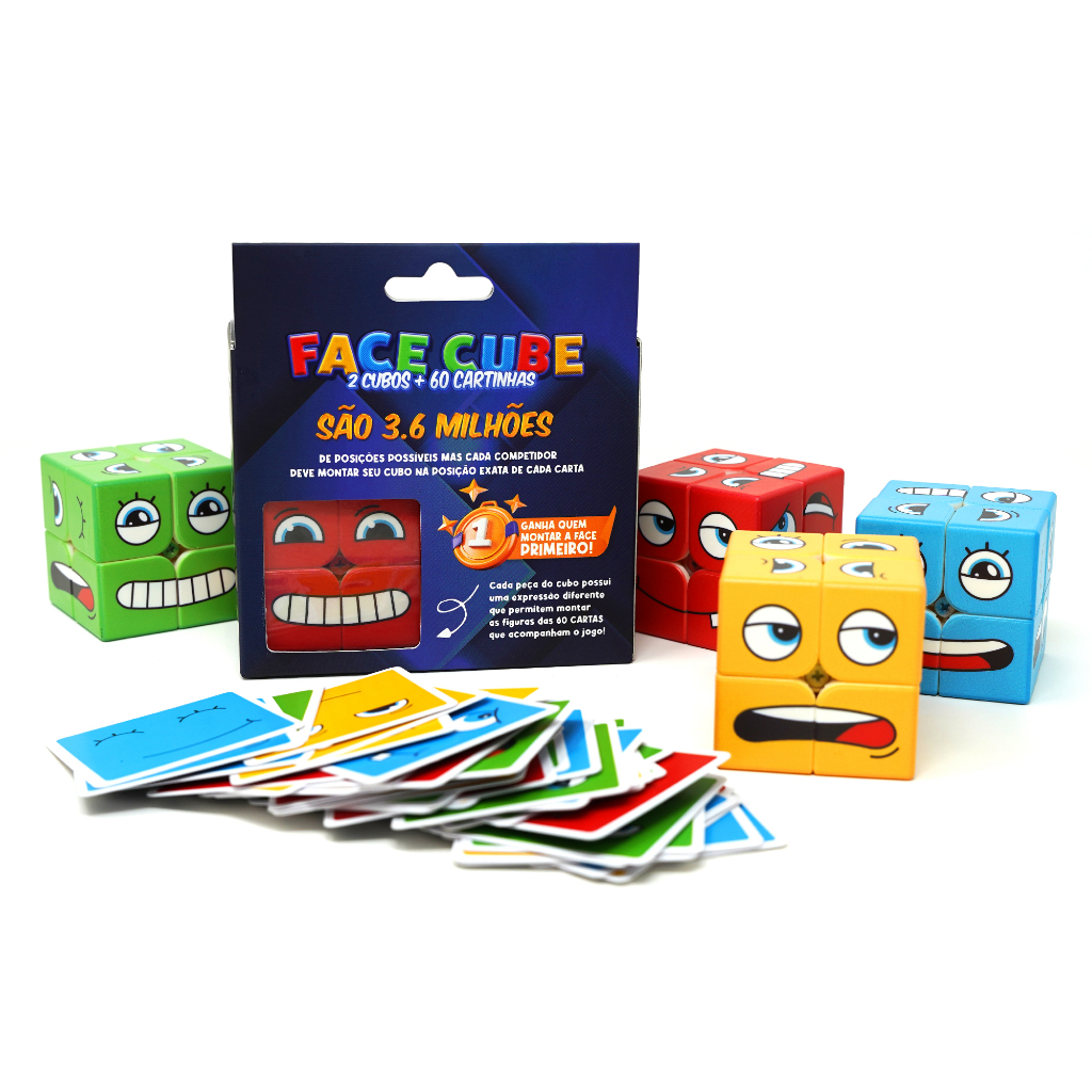FACE CUBE - 2 Cubos Mágicos Personalizados + Baralho com 60 Cartas