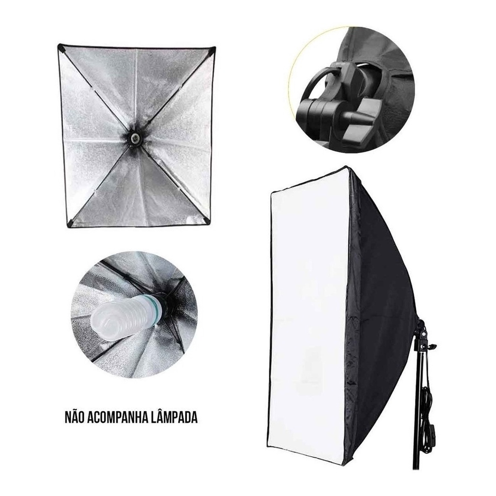 Kit Luz Contínua Softbox 50x70cm + Tripé 2m E27 Estúdio