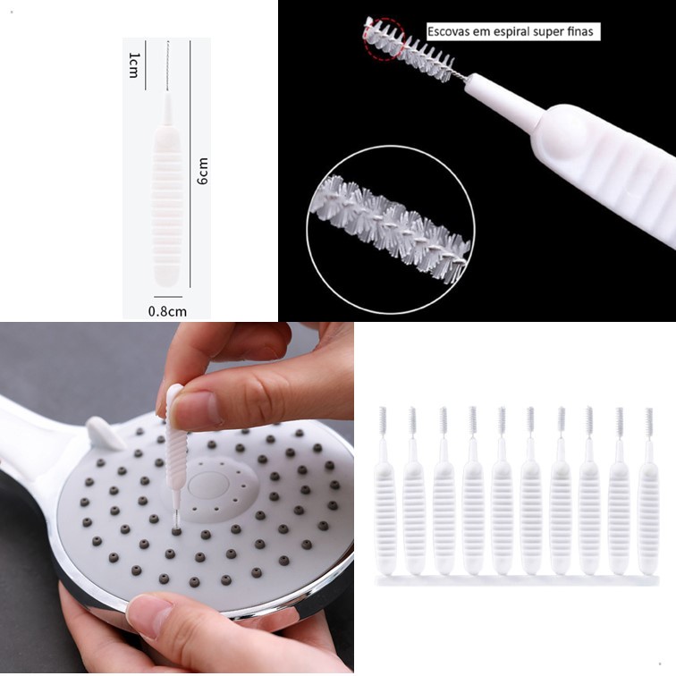 Kit 10 Escovas Escovinhas Delicada p/ Limpar Chuveiro Fogão Pequenos Orifícios Espiral Multi-função