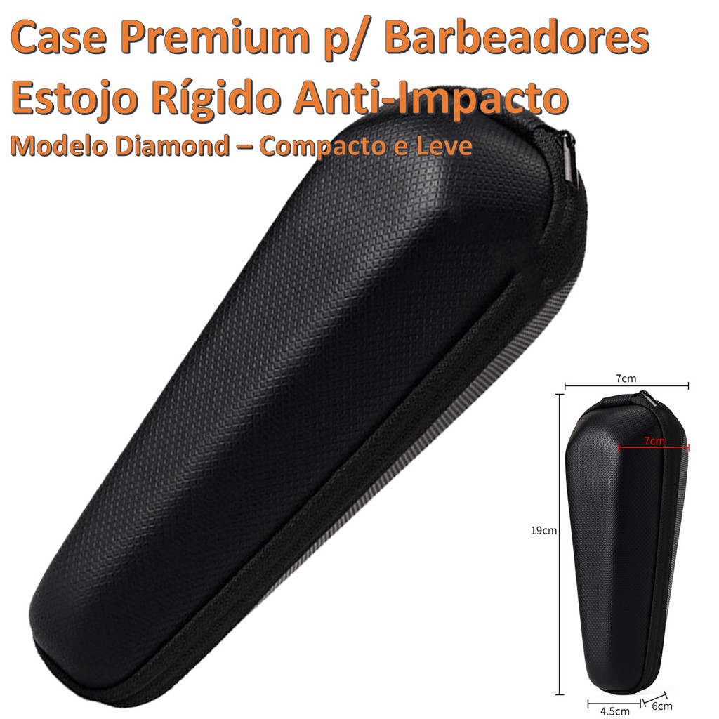 Case Estojo Slim Modelo Diamond Luxo Premium Rígido p/ Barbeadores Proteção p/ Viagem Preto Compacto