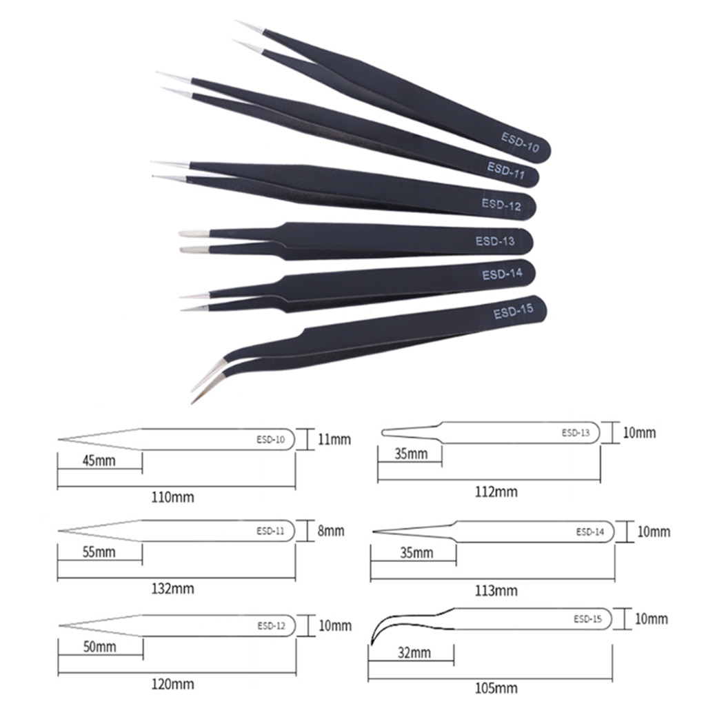 Kit 10pc 1 Tapete + 6 pinças antiestatica + 3 espátulas inox