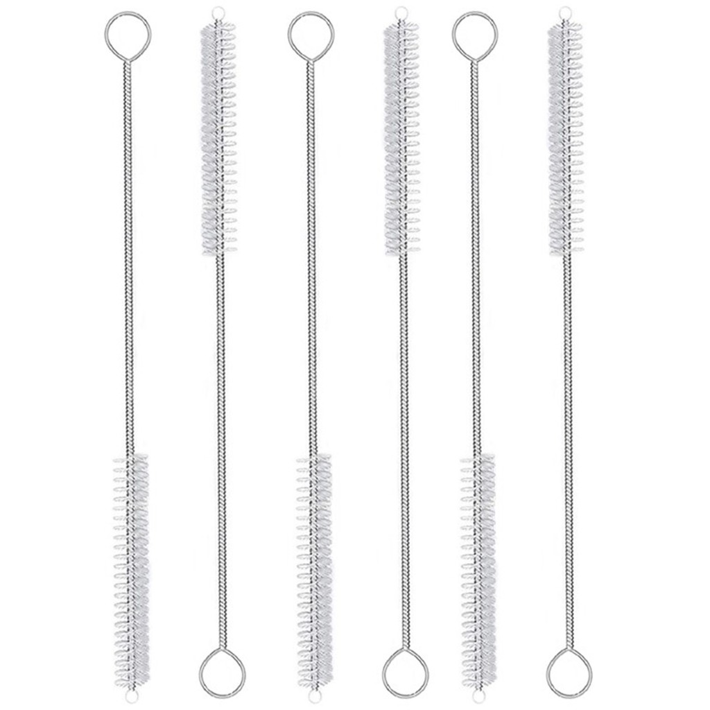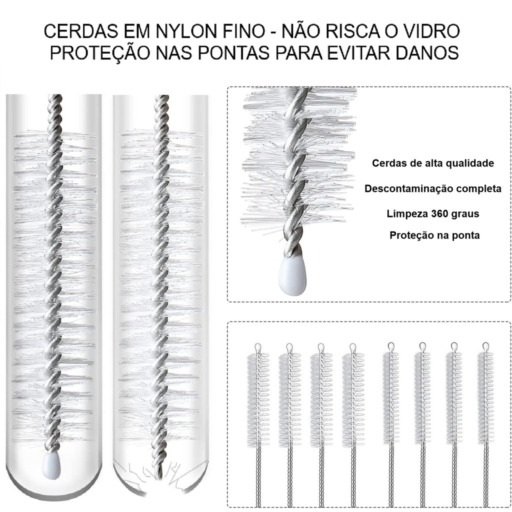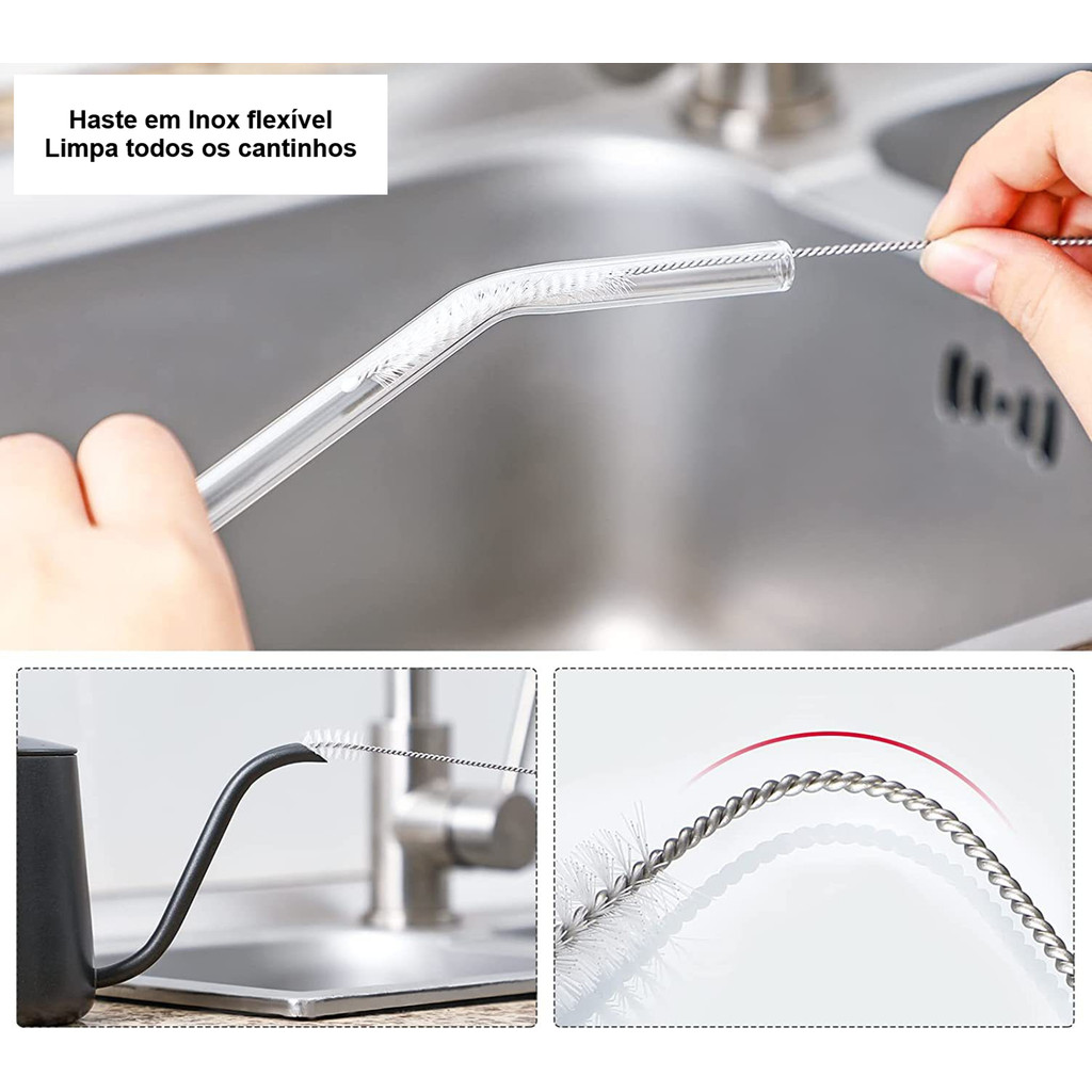 Kit 6 Escova de limpeza de canudo Cerdas Nylon Haste Inox Flexível 21cm