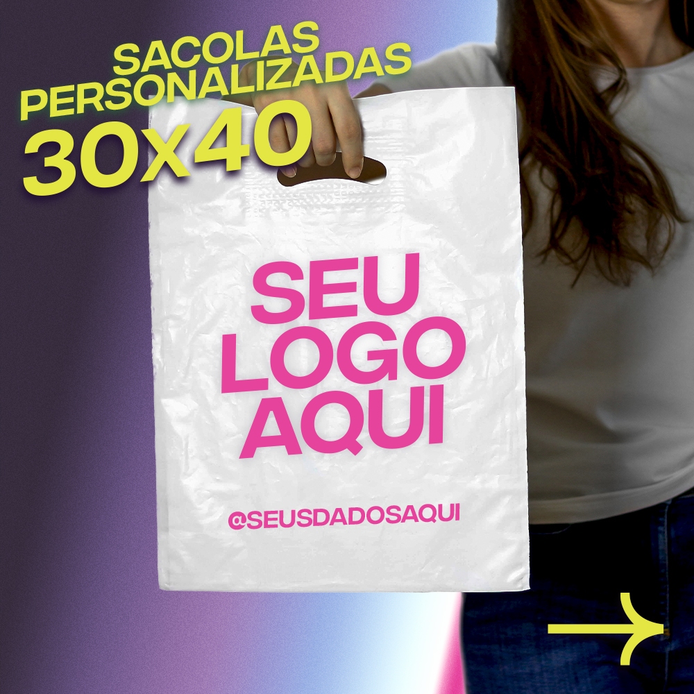 ⚠️ ATENÇÃO - NÃO COMPRE 100 Sacolas Personalizadas Com sua Marca - 30x40cm - Boca de Palhaço / Boca vazada